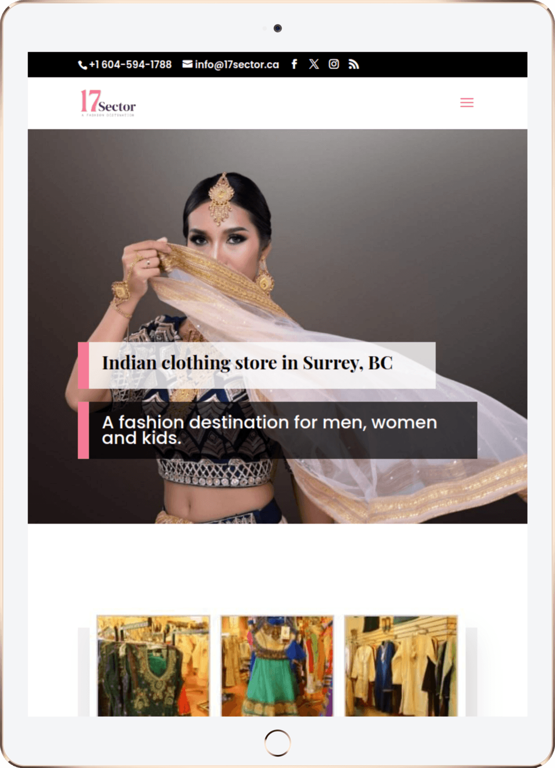 Website Design for 17 Sector Fashion & Fabrics - 17sector.ca | Custom-Made Ethnic Dresses, Exclusive Wedding Jewelry, Affordable Fashion Accessories, Celebrity Fashion Trends, Tailored Bridal Wear