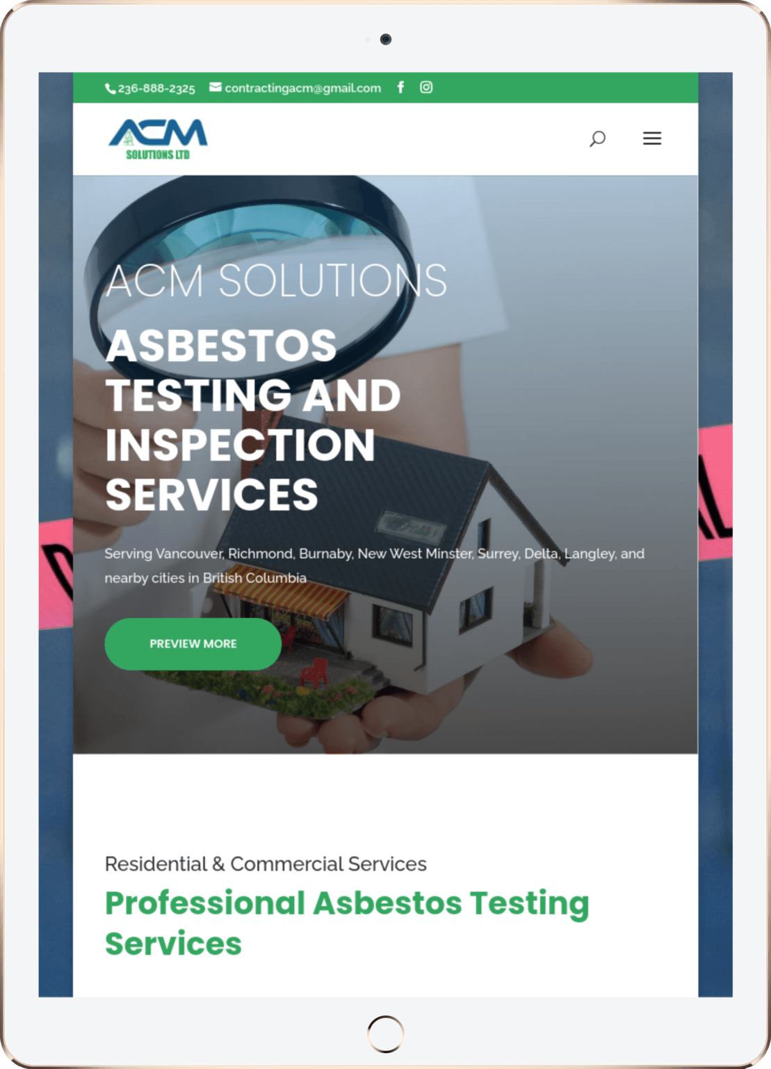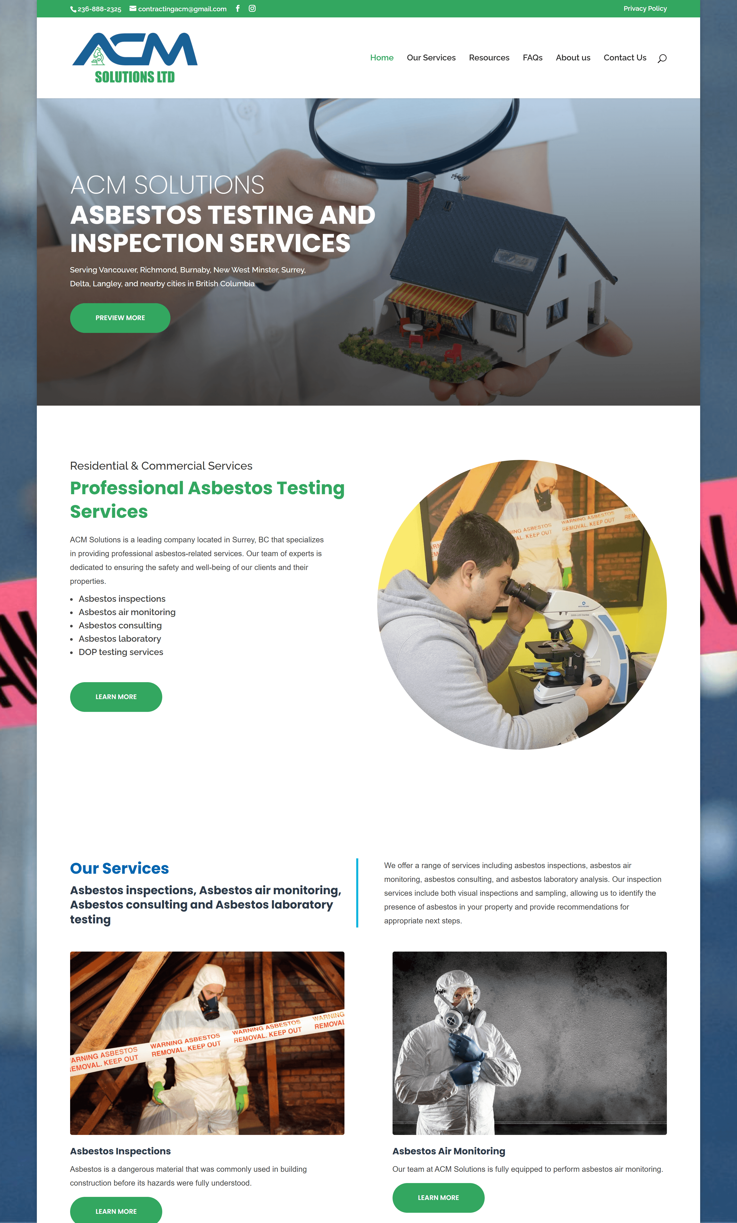 Website Design for ACM Solutions - acmsolutions.ca | Asbestos Inspection Services, Air Monitoring Solutions, Professional Asbestos Consulting, Laboratory Analysis for Asbestos, DOP Testing Services