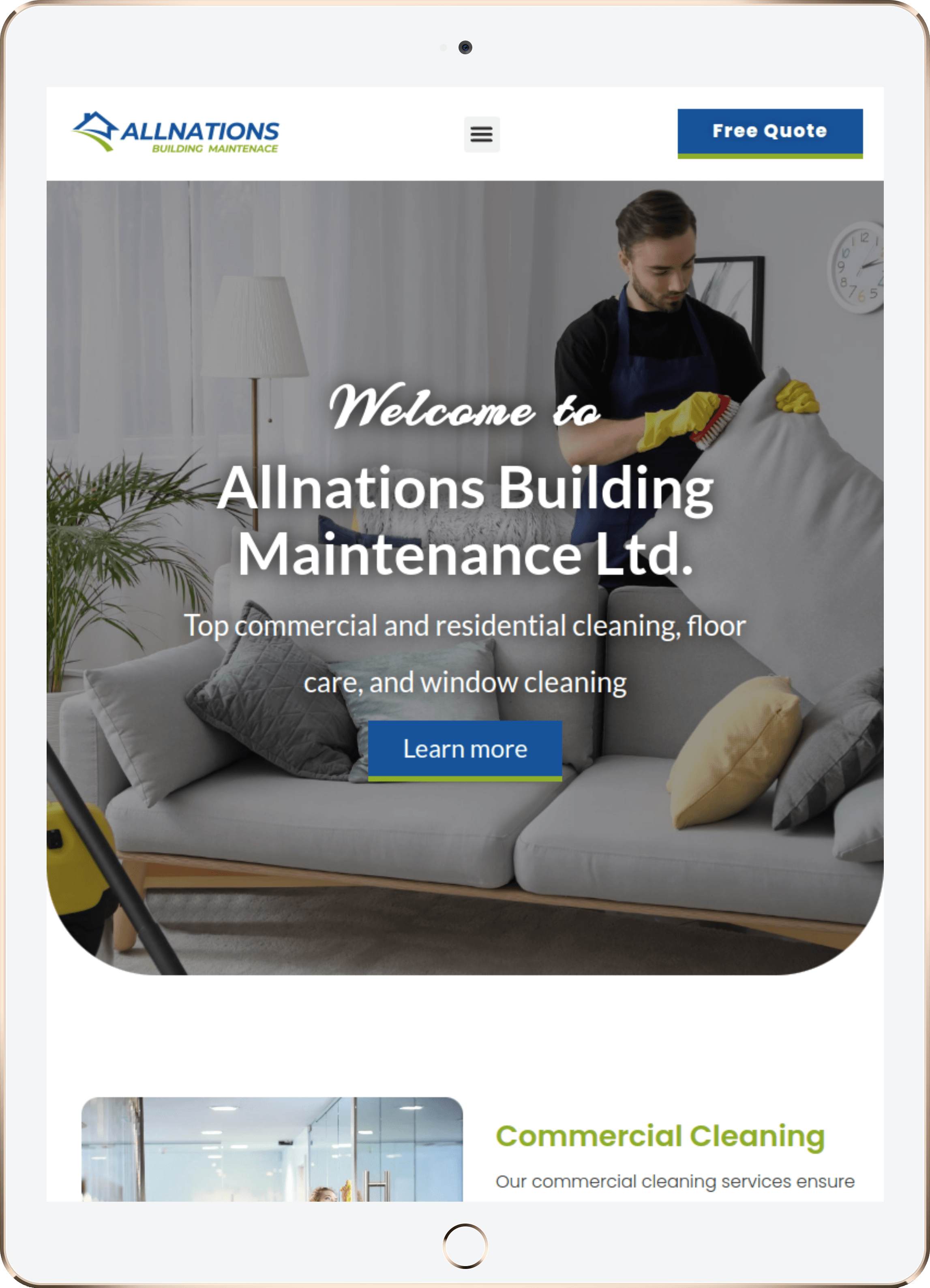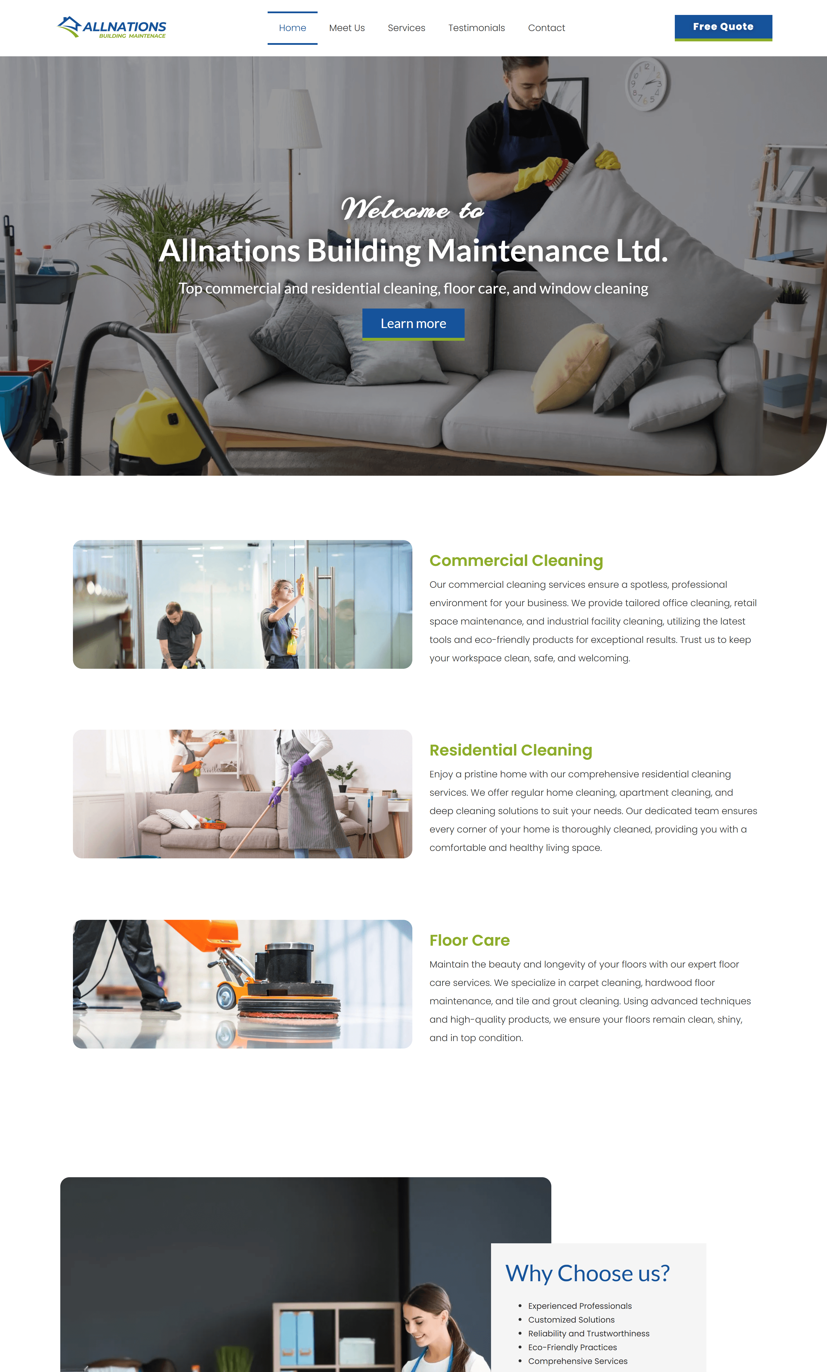 Website Design for Allnations Building Maintenance Ltd. - allnationsbuildingmaintenace.com | Commercial Cleaning Services, Residential Cleaning Solutions, Floor Care and Maintenance, Eco-Friendly Cleaning Products, Window Cleaning Services