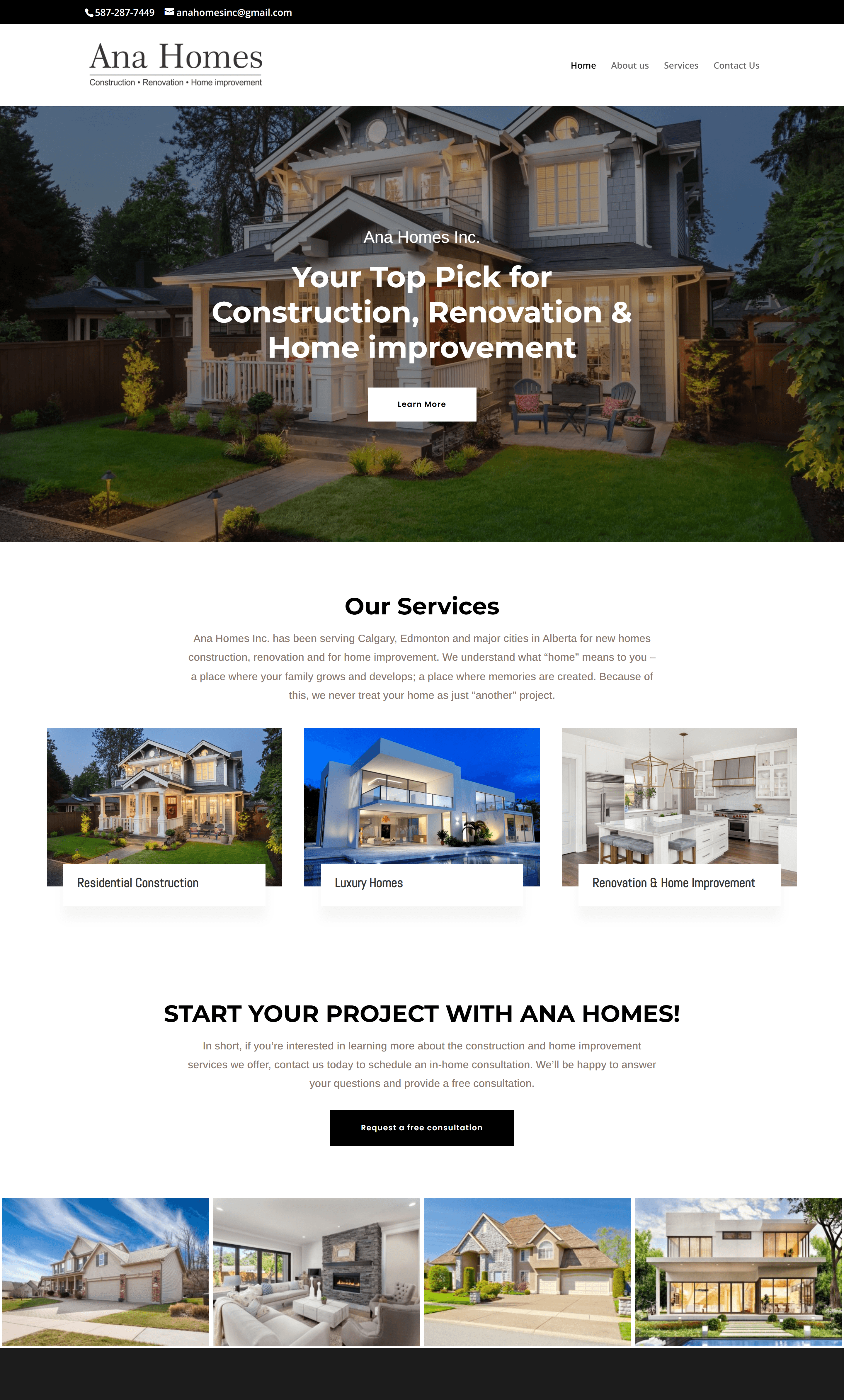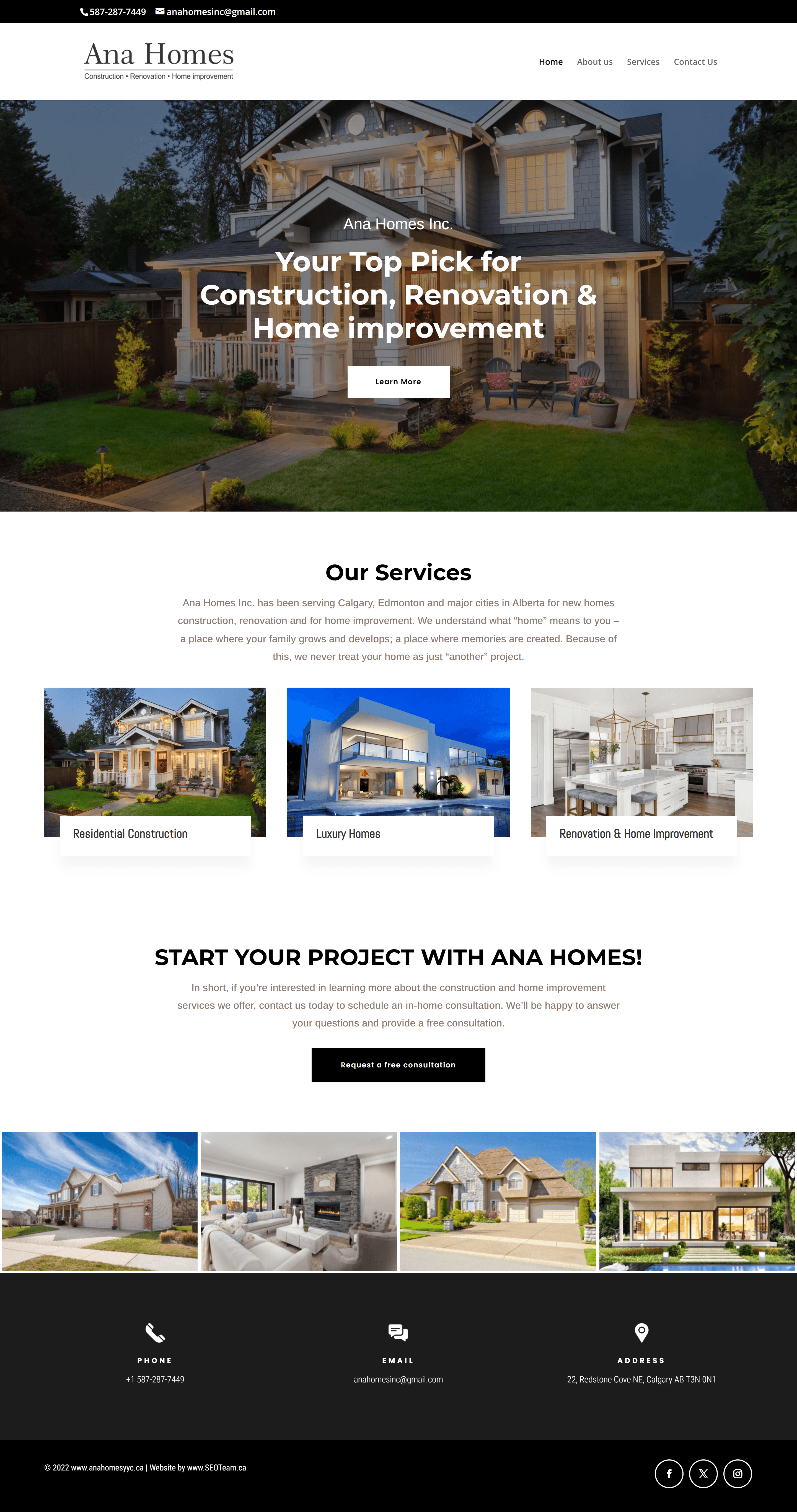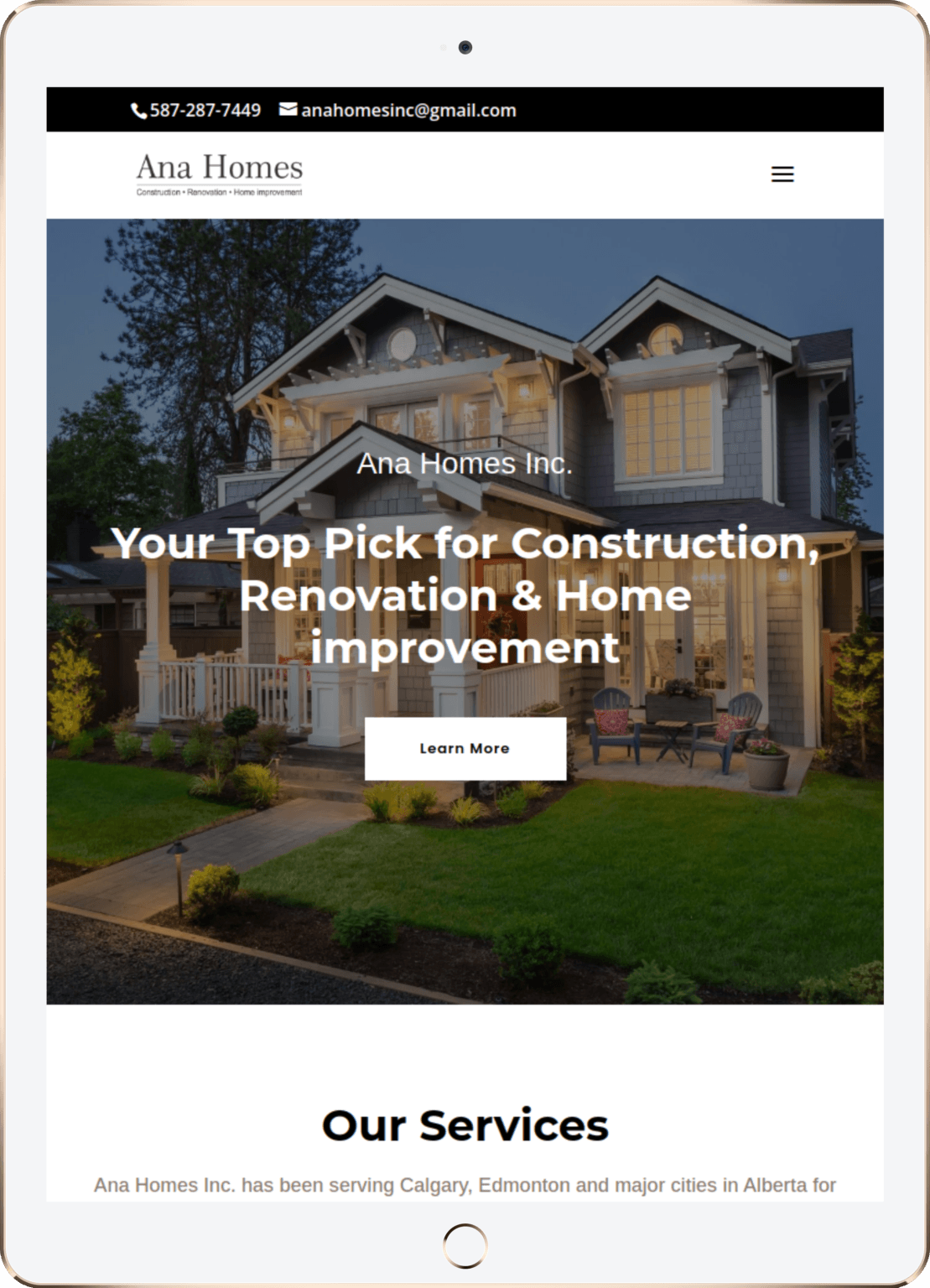 Website Design for Ana Homes Inc. - anahomesyyc.ca | Custom Home Design, Home Renovation Services, Residential Construction Experts, Kitchen and Bathroom Remodeling, Professional Home Builders