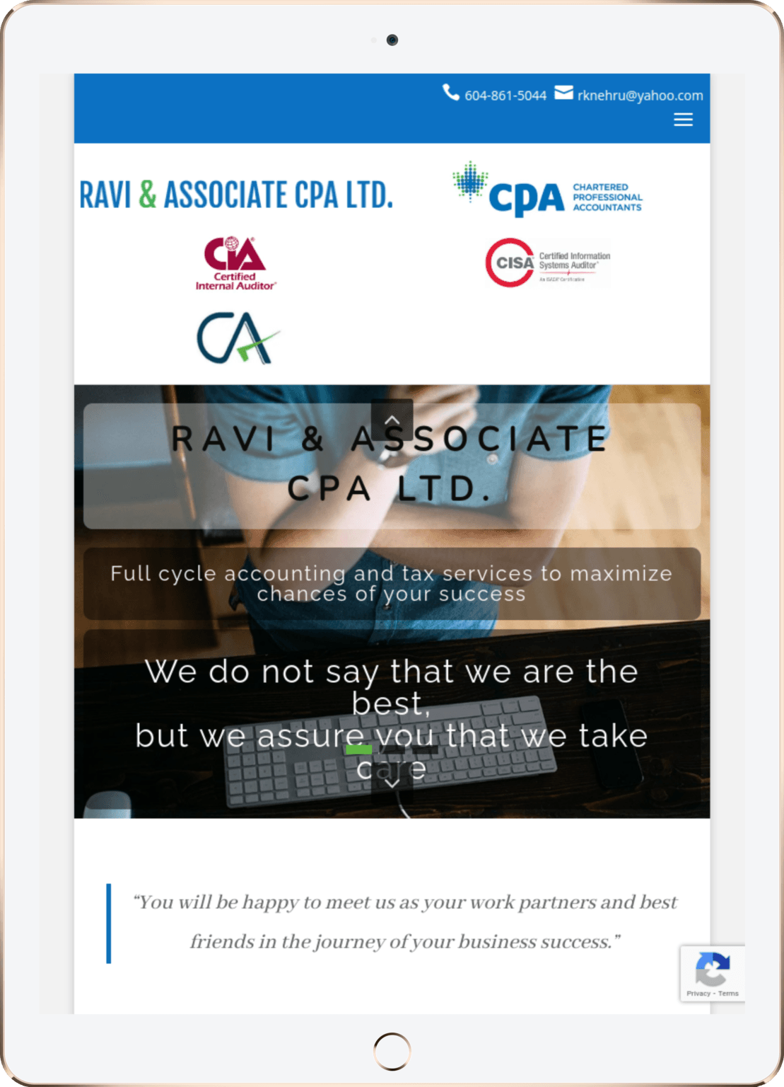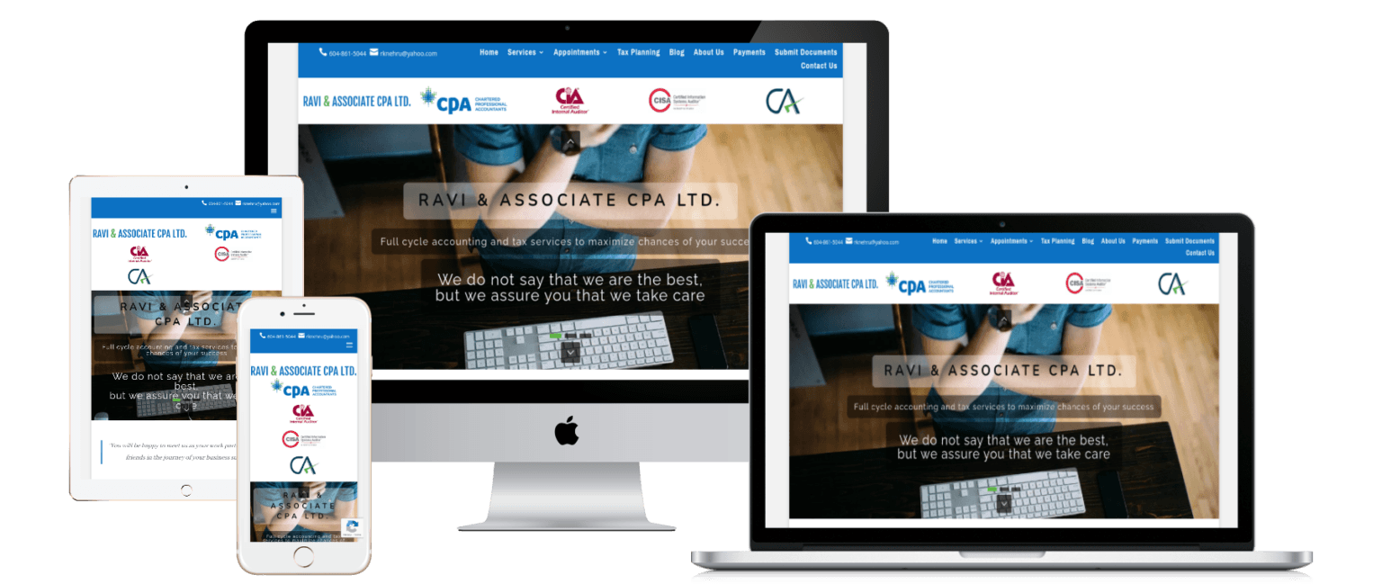 Website Design for Ravi & Associate CPA Ltd. - ravinehrucpa.com | Accounting Services, Tax Preparation Services, Bookkeeping Services, Business Consulting Services, CRA-Related Matters