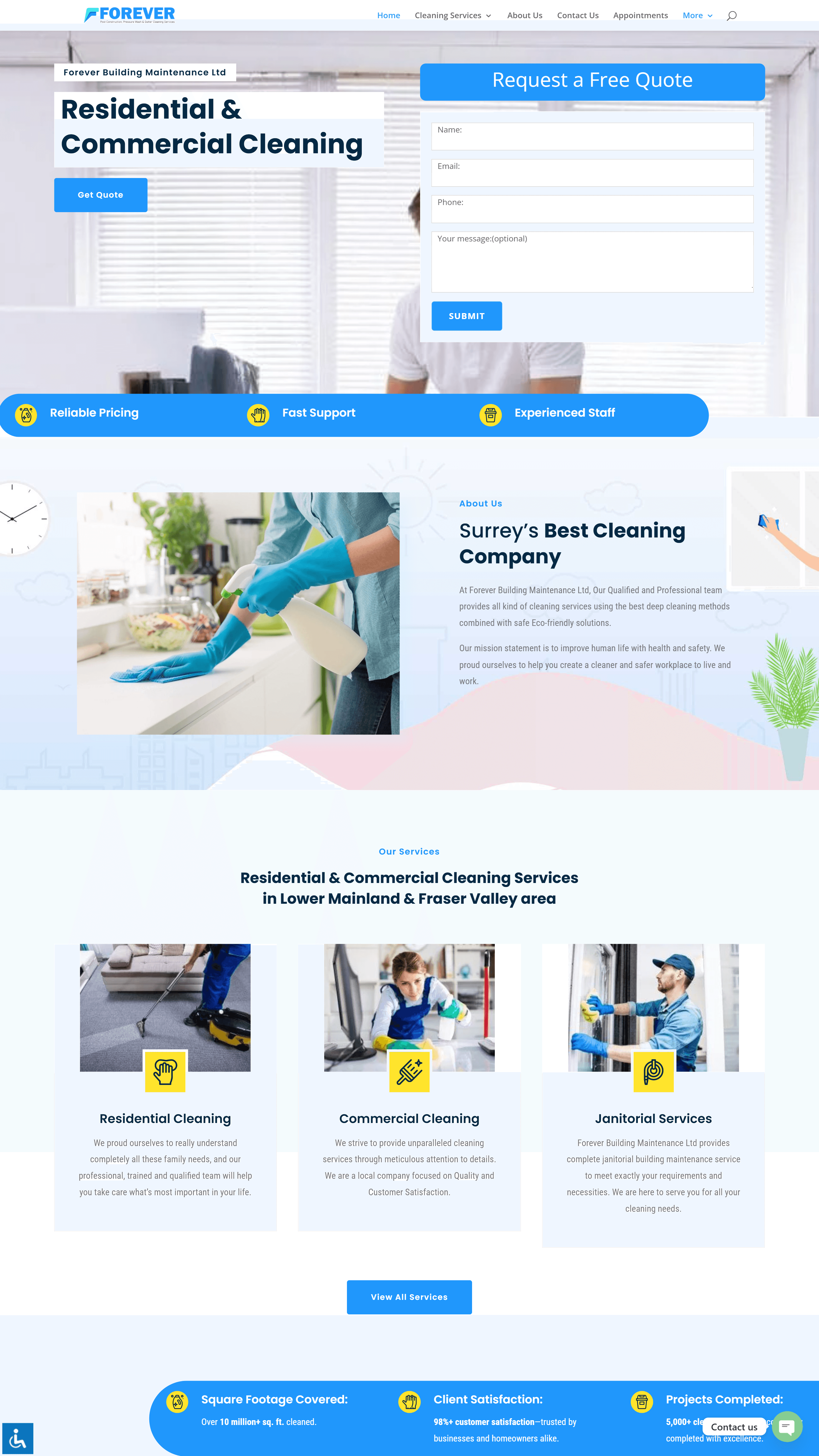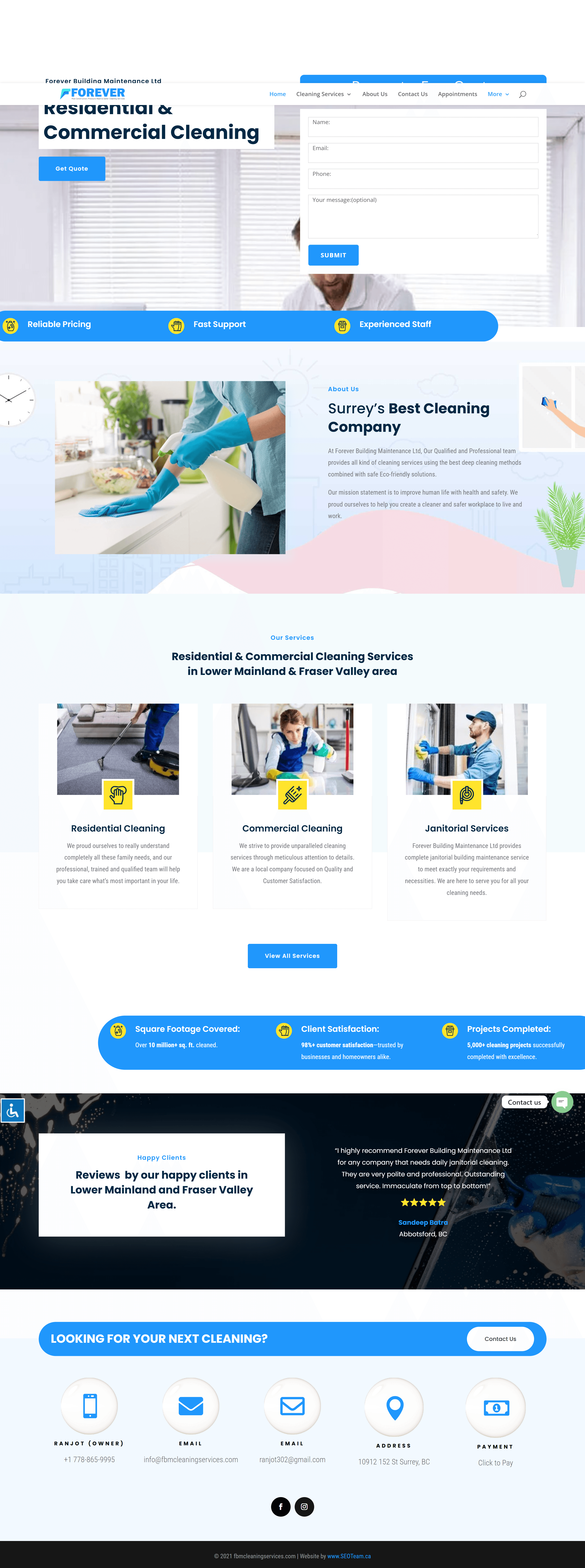 Website and Graphic designing services for FBM Cleaning Services located at 10912 152 St Surrey, BC V3R 6S6. Business / Website type: Cleaning Services