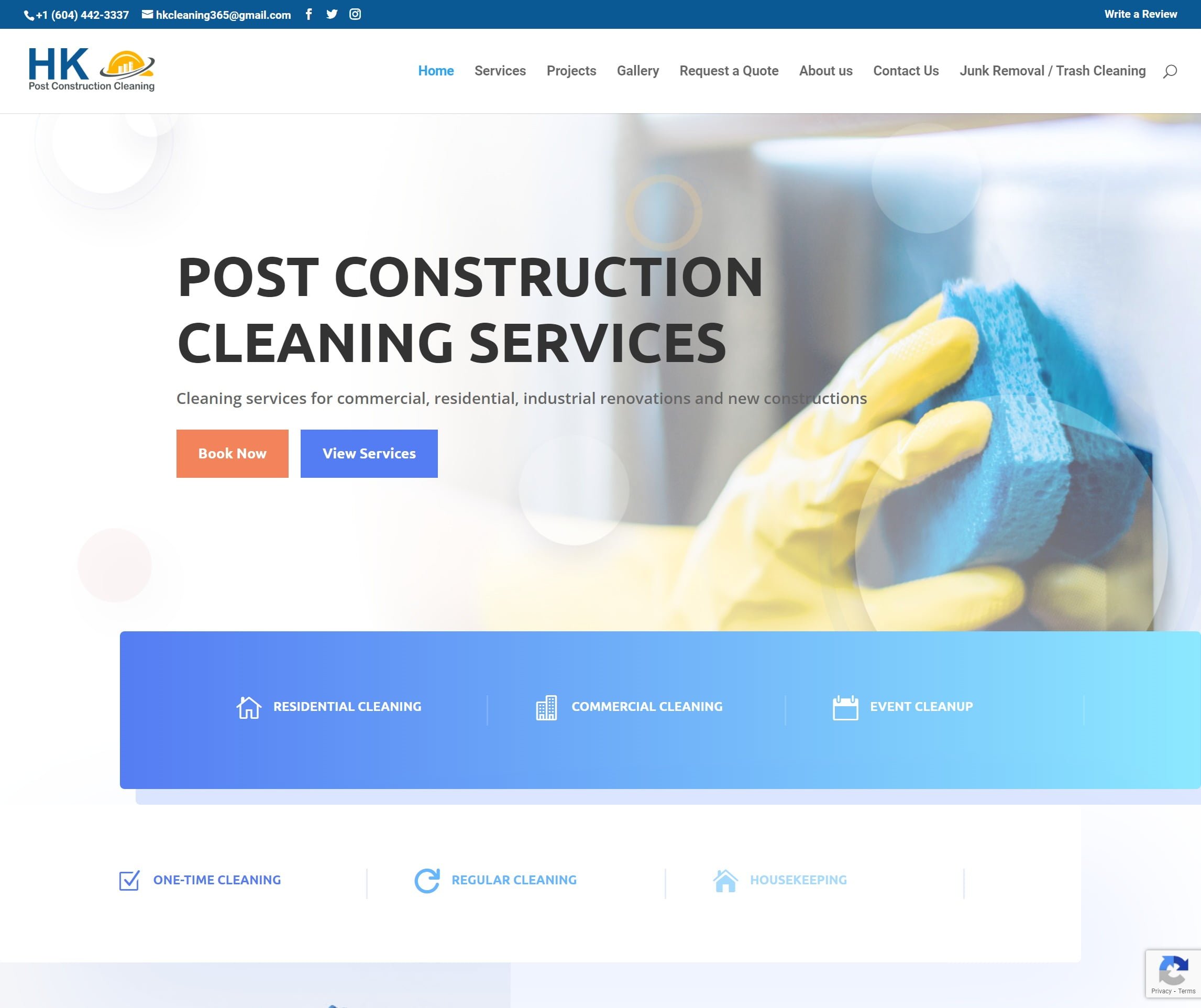 Website Design for HK Post Construction Cleaning - hkpostconstructioncleaning.ca | Post Construction Cleaning Services, Professional Cleaning Solutions, Move In Move Out Cleaning, Window Washing Services, Carpet Cleaning and Junk Removal
