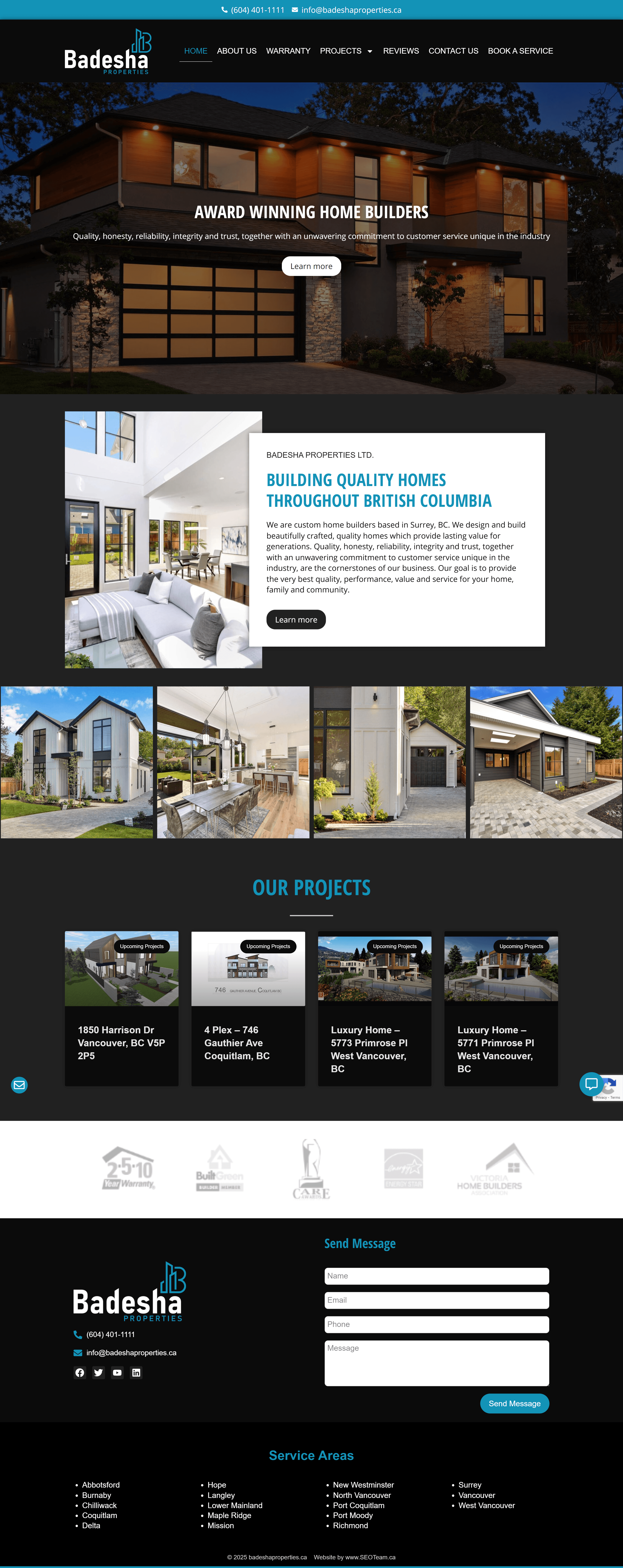 Website Design for Badesha Properties Ltd. - badeshaproperties.ca | Custom Home Builder, Quality Home Construction, Residential Design Services, Integrity in Home Building, Reliable Construction Services