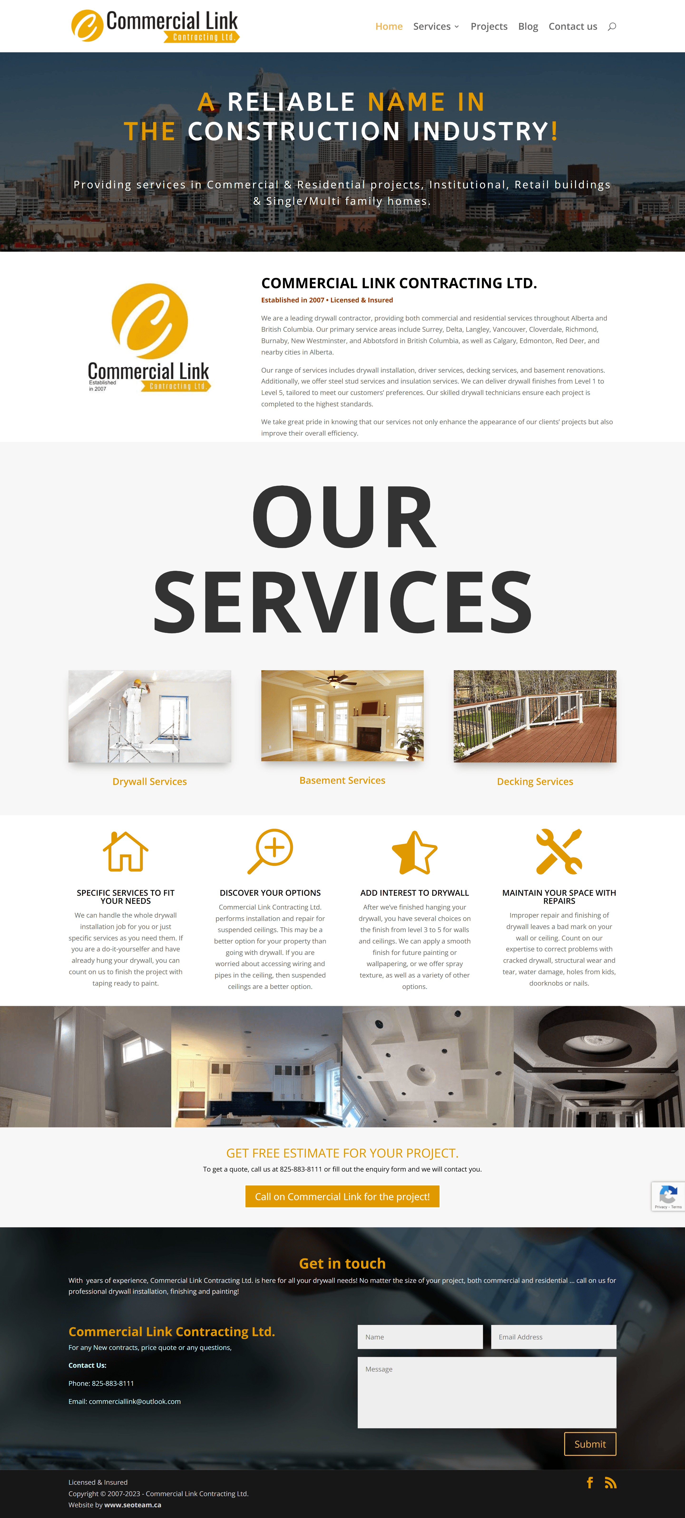 Website Design for Commercial Link Contracting Ltd. - commerciallink.net | Drywall Installation Services, Residential Drywall Contractors, Commercial Drywall Solutions, Basement Renovation Experts, Decking Service Providers