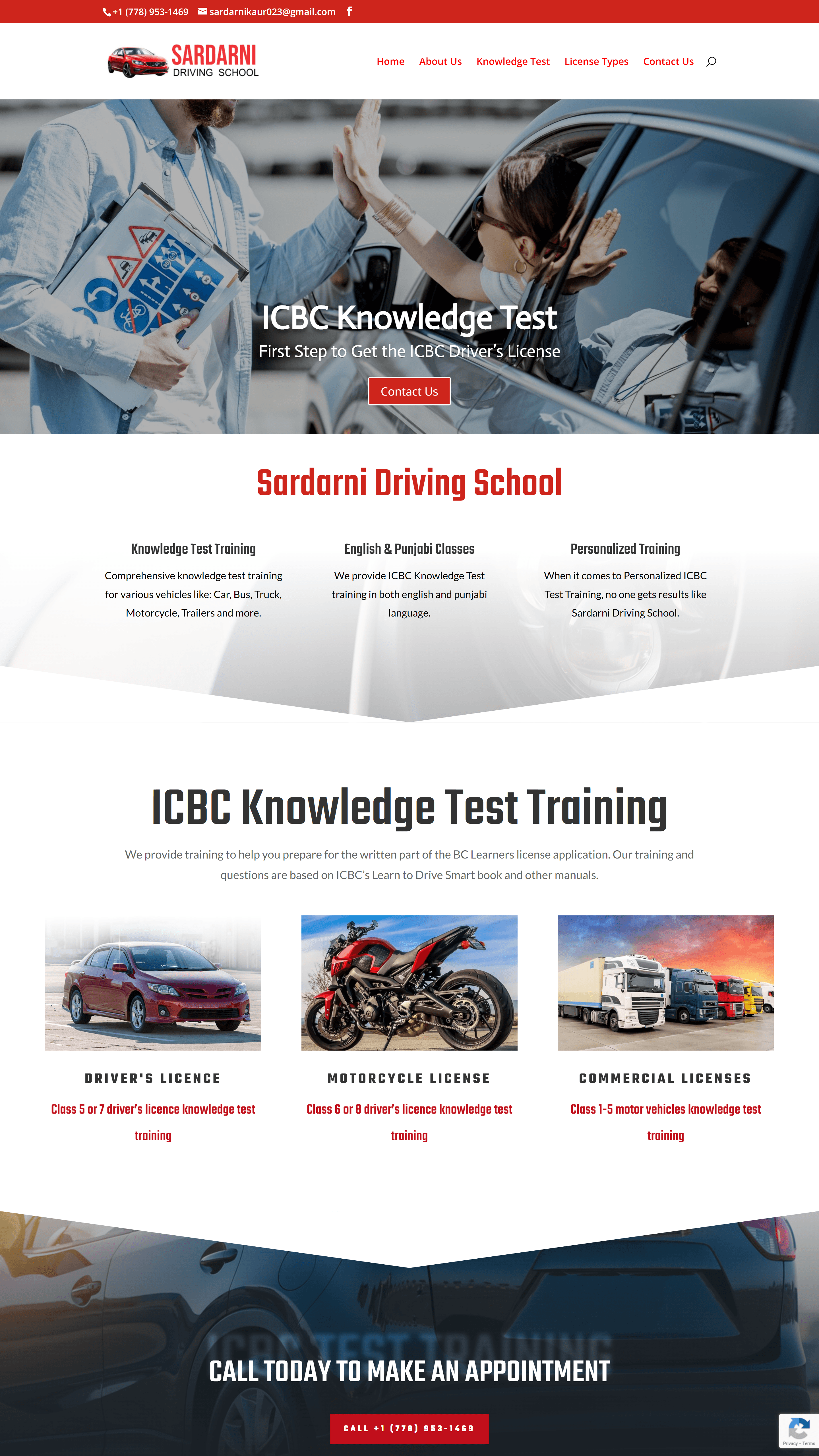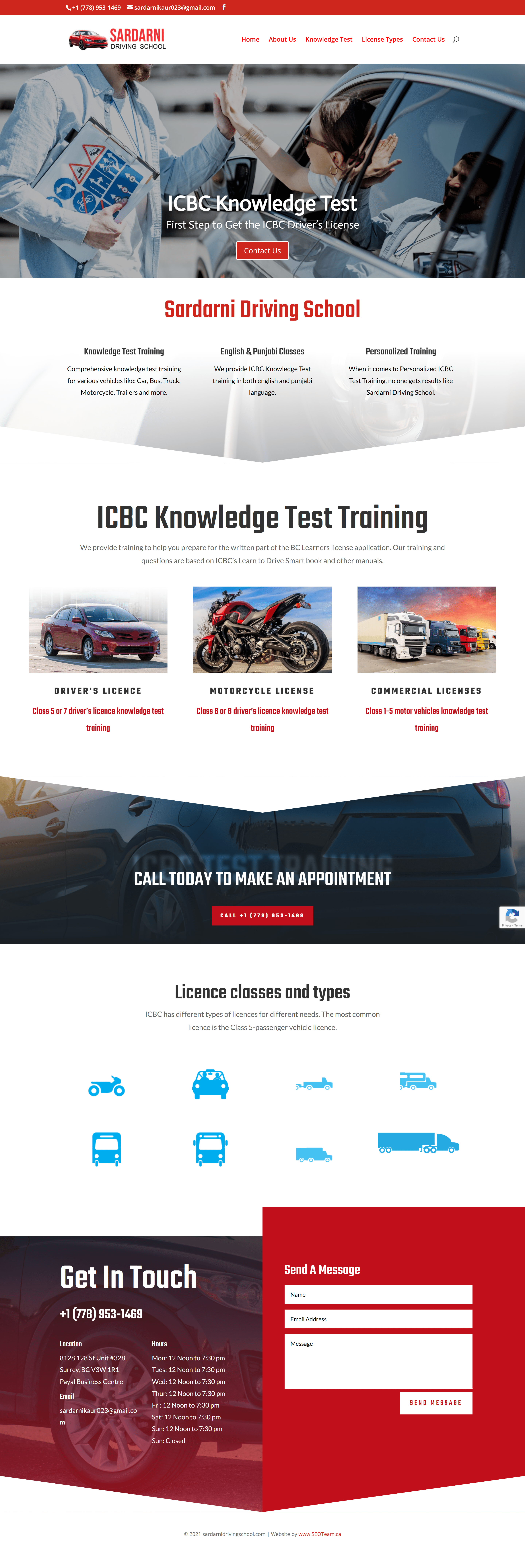 Website Design for Sardarni Driving School - sardarnidrivingschool.com | ICBC Knowledge Test Training, Comprehensive Driving Lessons, Personalized Driver Training Sessions, Written Portion License Preparation, Multilingual Driving School Services