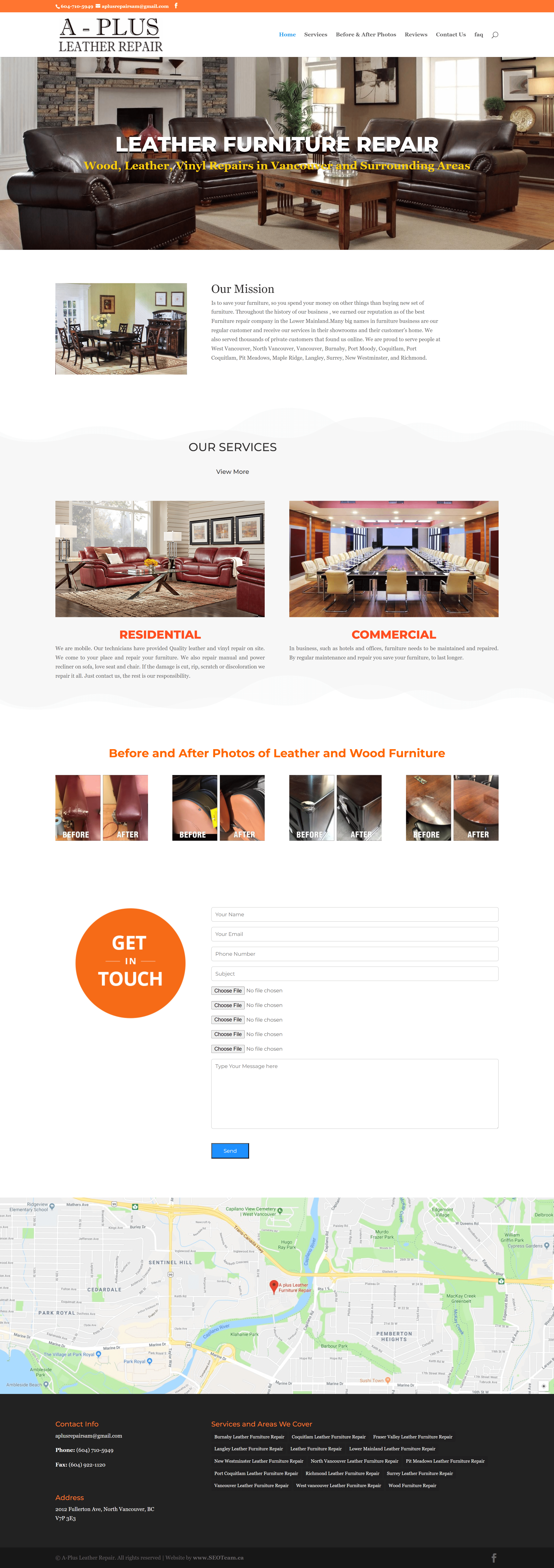 A-Plus Leather Furniture Repair is a specialized service focused on the on-site repair of leather and vinyl furniture. Catering to both residential and commercial clients, this business operates across the Lower Mainland, including cities like Vancouver, Burnaby, Coquitlam, and Surrey. The company prides itself on its expertise in restoring and maintaining high-quality leather furnishings, ensuring customer satisfaction through skilled craftsmanship. Target keywords for this business include “leather repair,” “furniture restoration,” and “vinyl repair,” which help to enhance its online visibility and attract clients seeking reliable and professional repair services.