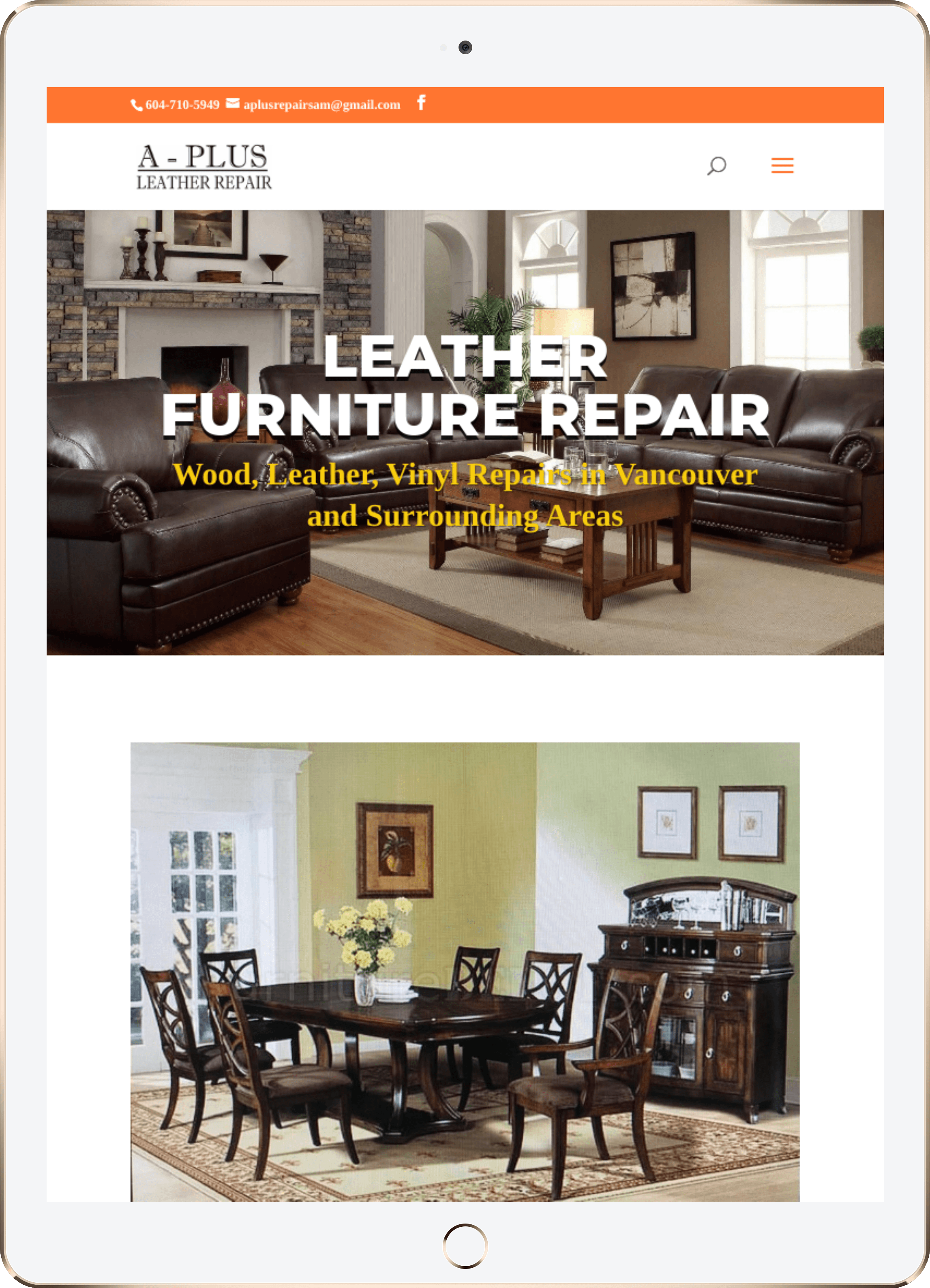 Website Design for A-Plus Leather Furniture Repair - aplusleatherrepair.ca | Leather Furniture Repair Services, On-Site Leather Repair Specialists, Vinyl Furniture Restoration Experts, Residential Leather Furniture Repairs, Commercial Leather Repair Solutions
