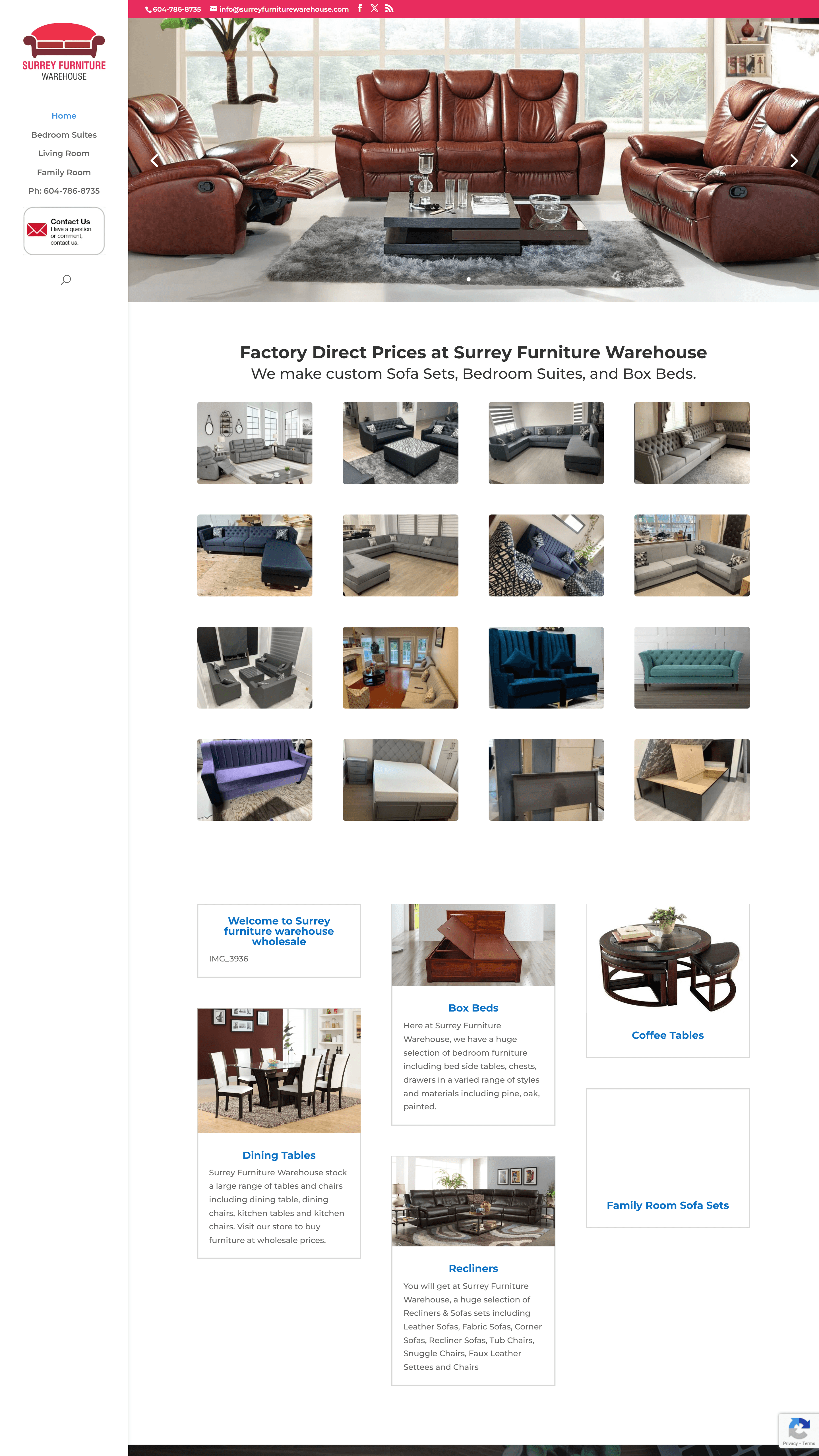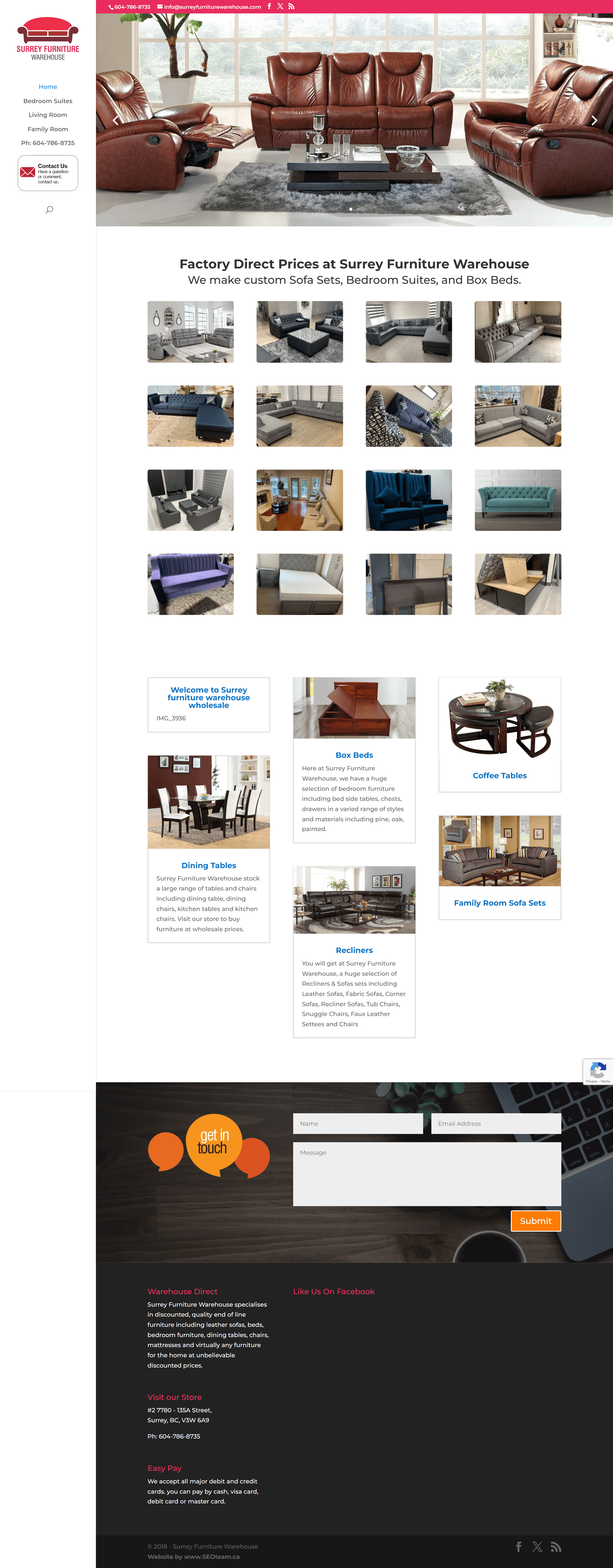 Website Design for Surrey Furniture Warehouse – Factory Direct Prices on Custom Furniture - surreyfurniturewarehouse.com | Custom Furniture Design, Discounted Quality Furniture, Leather Sofas and Beds, Bedroom Furniture and Dining Tables, Factory Direct Prices on Furniture