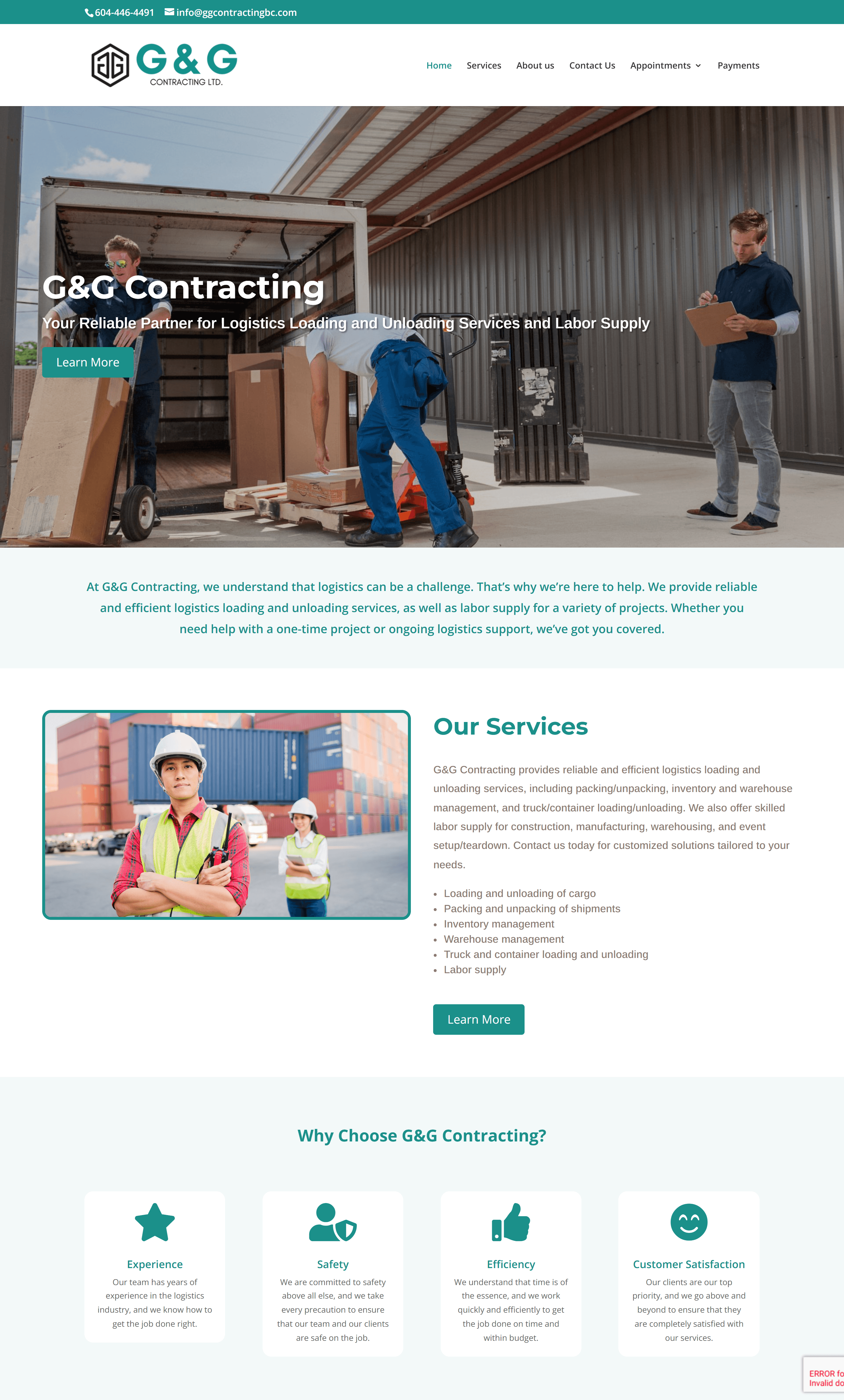 Website Design for G&G Contracting Ltd. - ggcontractingbc.com | Logistics Loading Services, Unloading Services, Labor Supply Solutions, Reliable Logistics Support, G&G Contracting Services