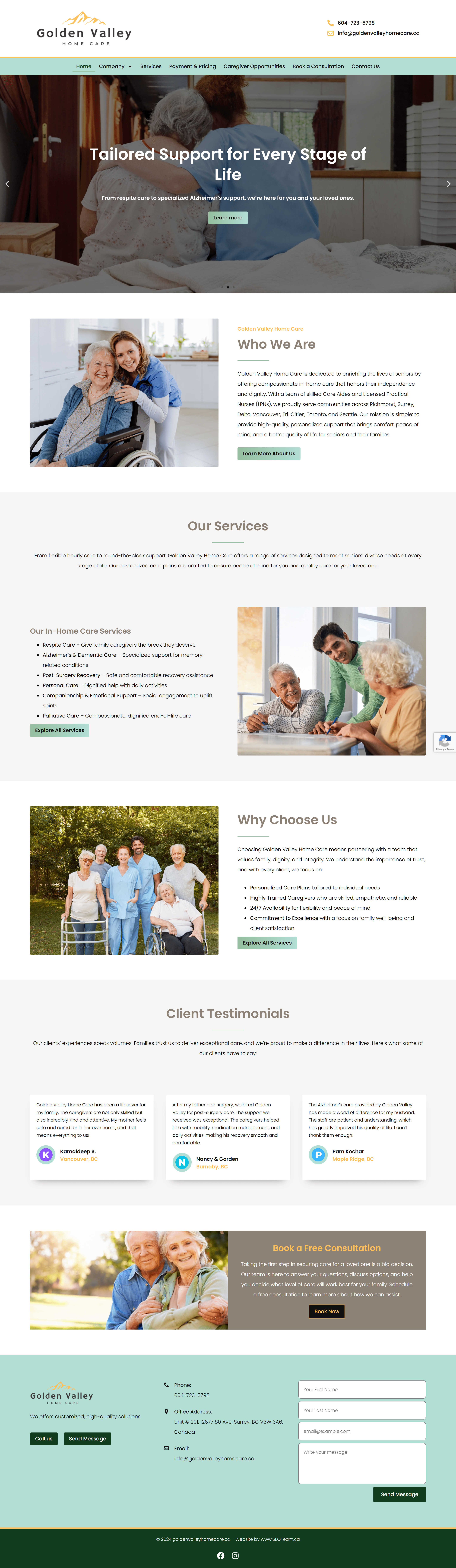 Website Design for Golden Valley Home Care - goldenvalleyhomecare.ca | Home Care Services For Seniors, In-Home Care For Elderly, Compassionate Care For Alzheimer's Patients, Personal Care And Companionship Services, Palliative Care And Post-Surgery Support