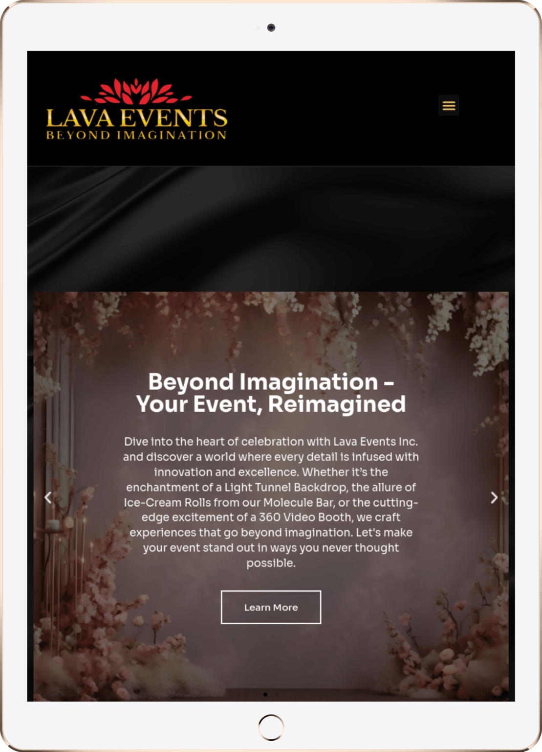 Website Design for Beyond Imagination - Your Event, Reimagined - lavaevent.com | Event Planning Services, 360 Photo Booth Rentals, Custom Dance Floor Design, Event Lighting Solutions, Sparkler Displays for Events