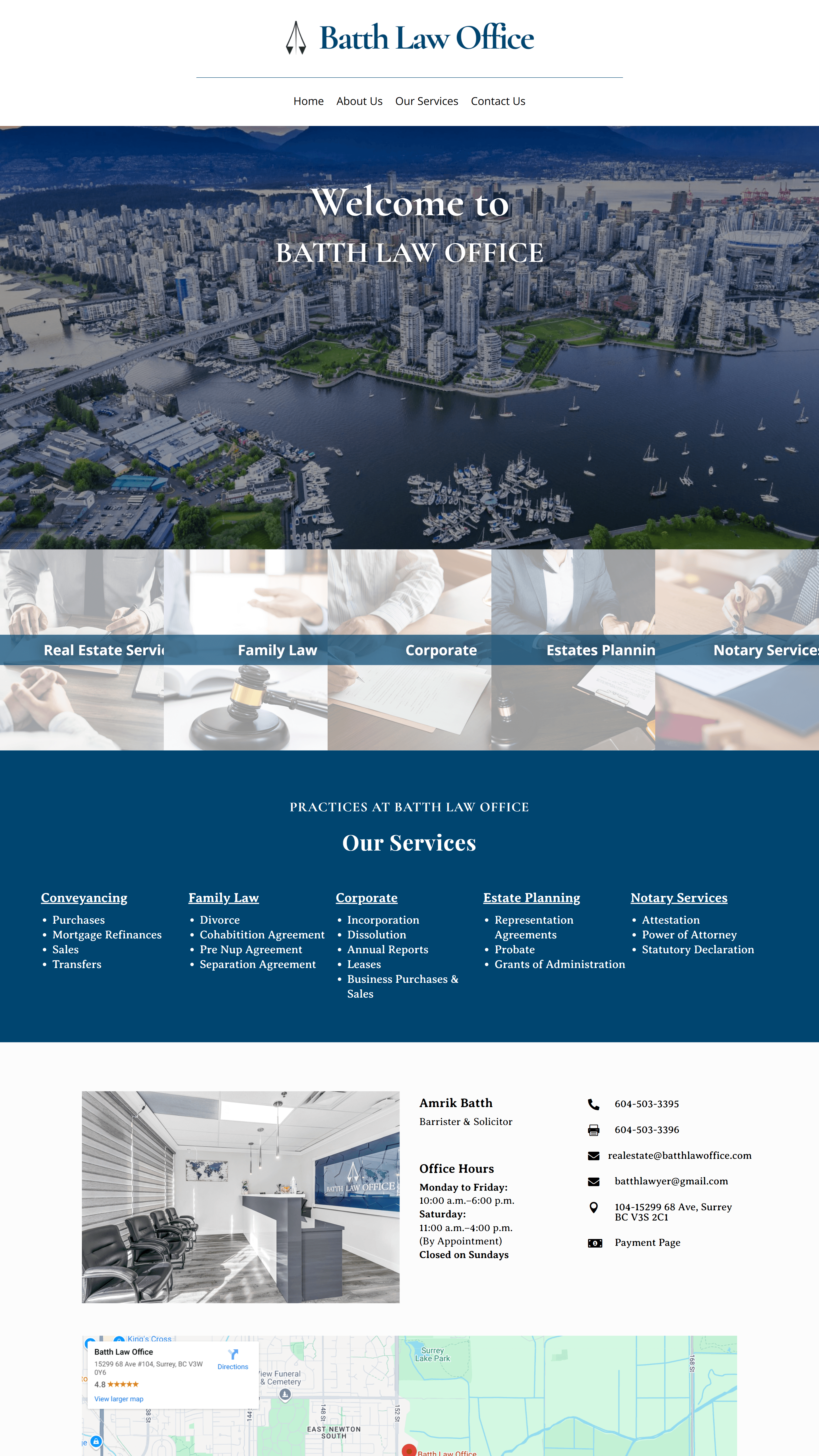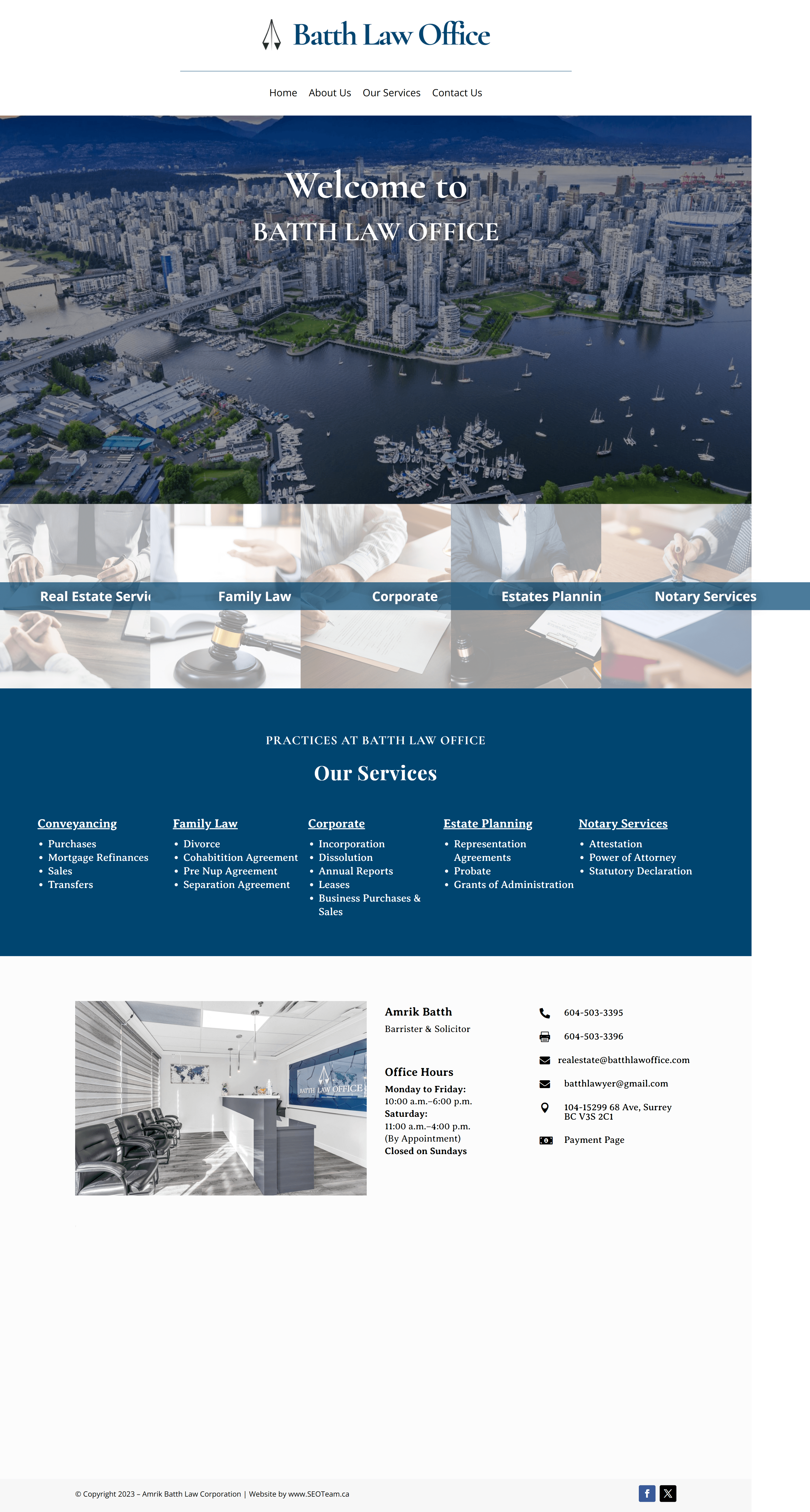 Website Design for Batth Law Office - batthlawoffice.com | Real Estate Legal Services, Family Law Services, Corporate Law Advisory, Estate Planning Assistance, Notary Public Services