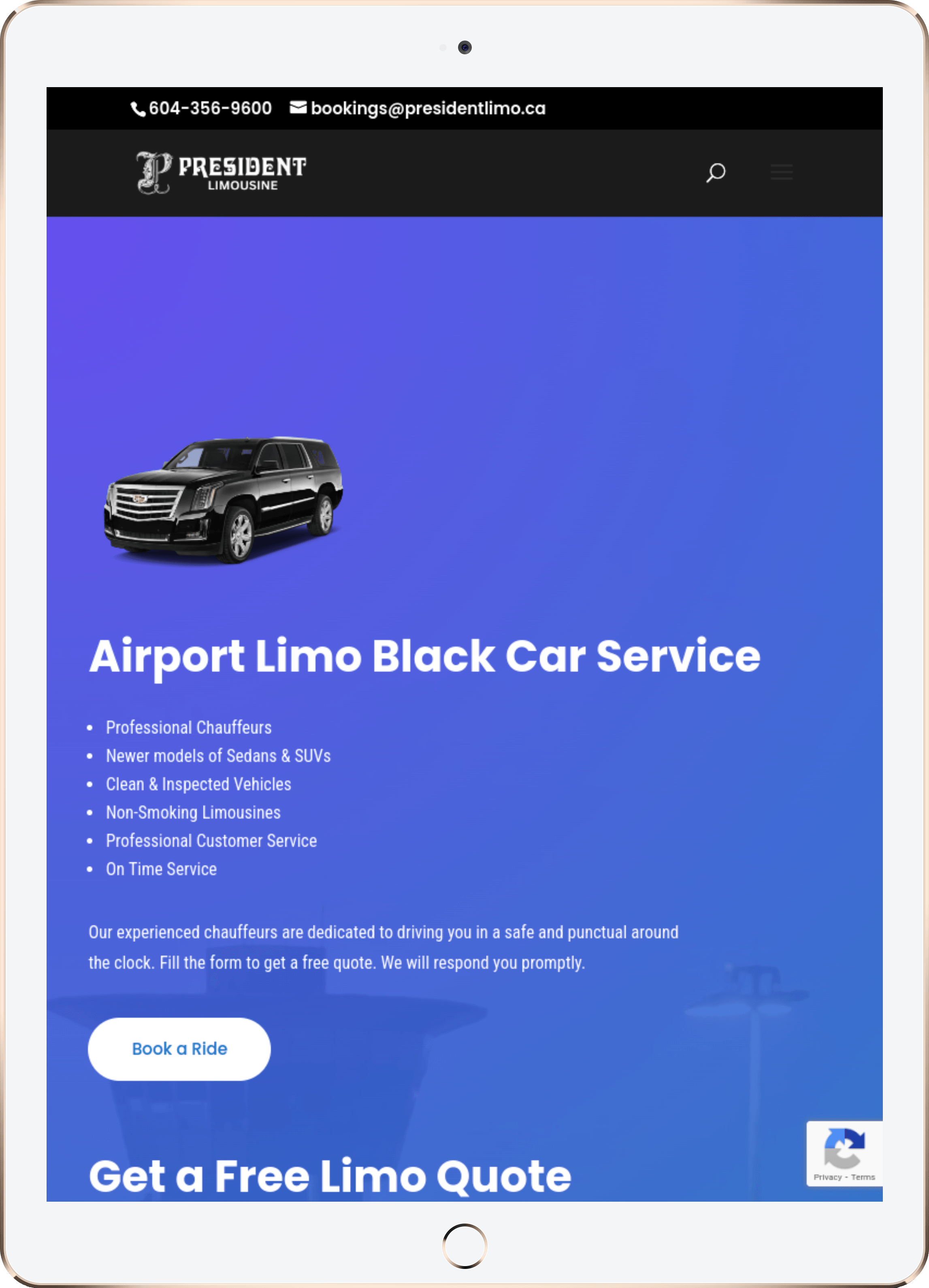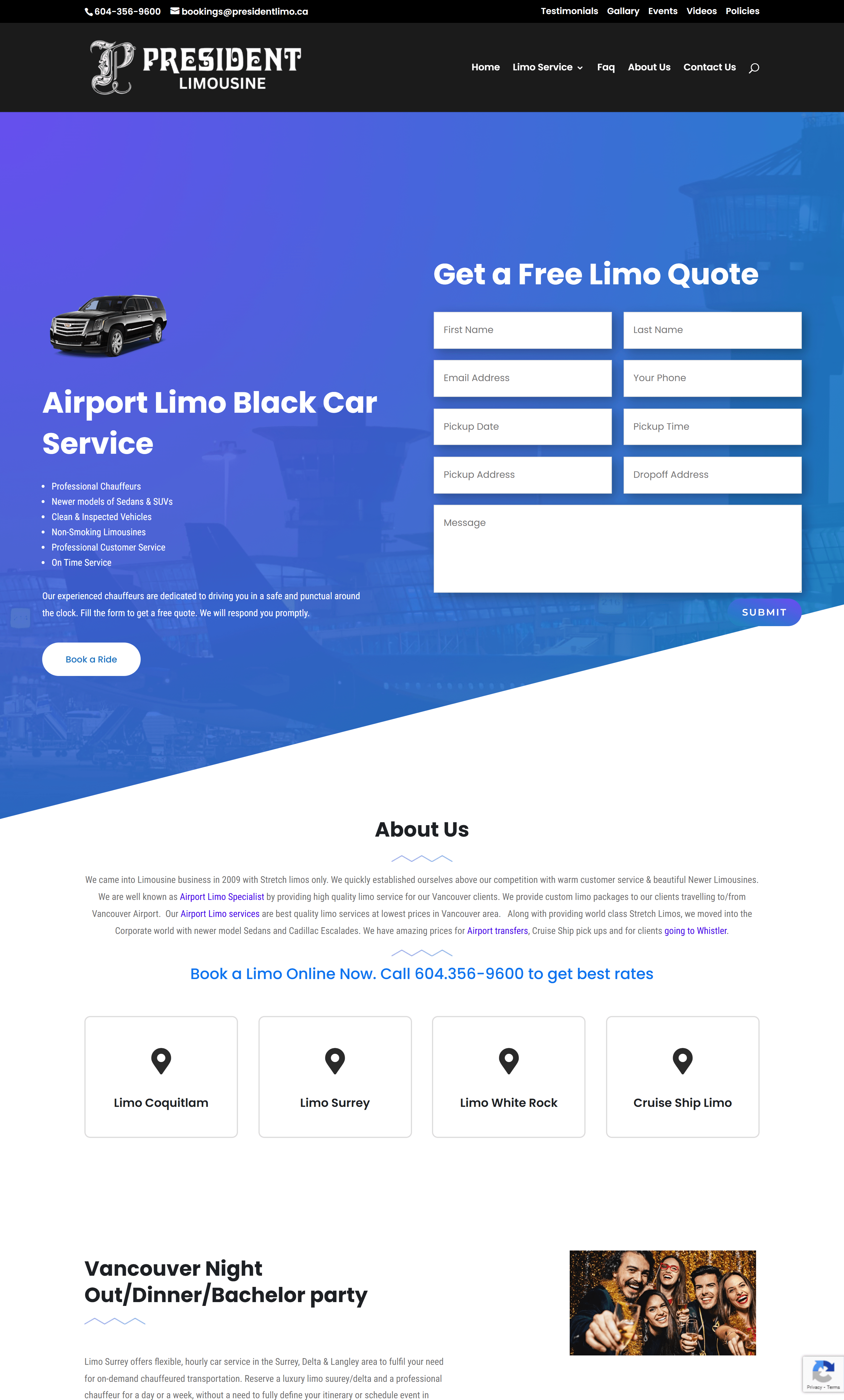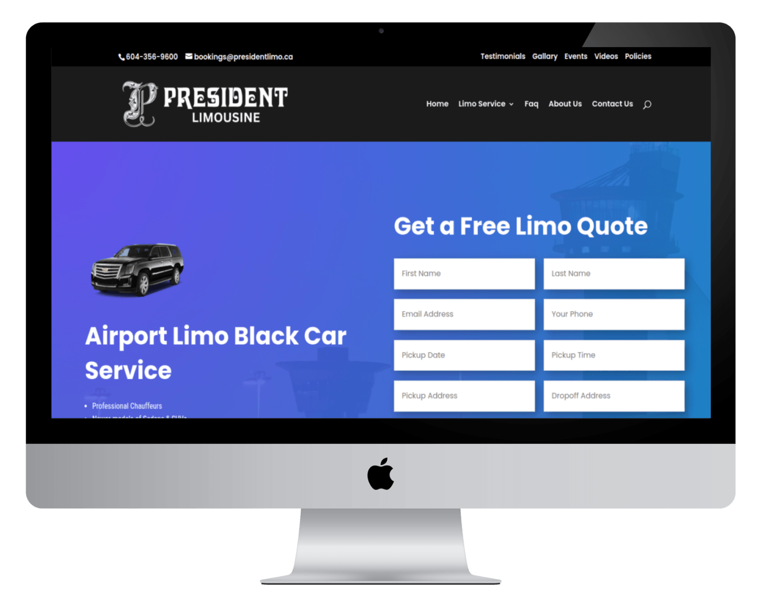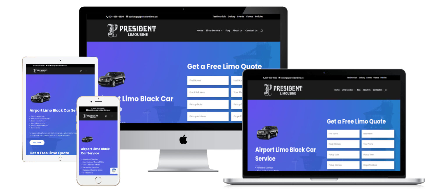 Website Design for President Limousine - presidentlimo.ca | Luxury Limousine Services, Vancouver Airport Transfers, Corporate Event Transportation, Wedding Limousine Rentals, Professional Chauffeur Services