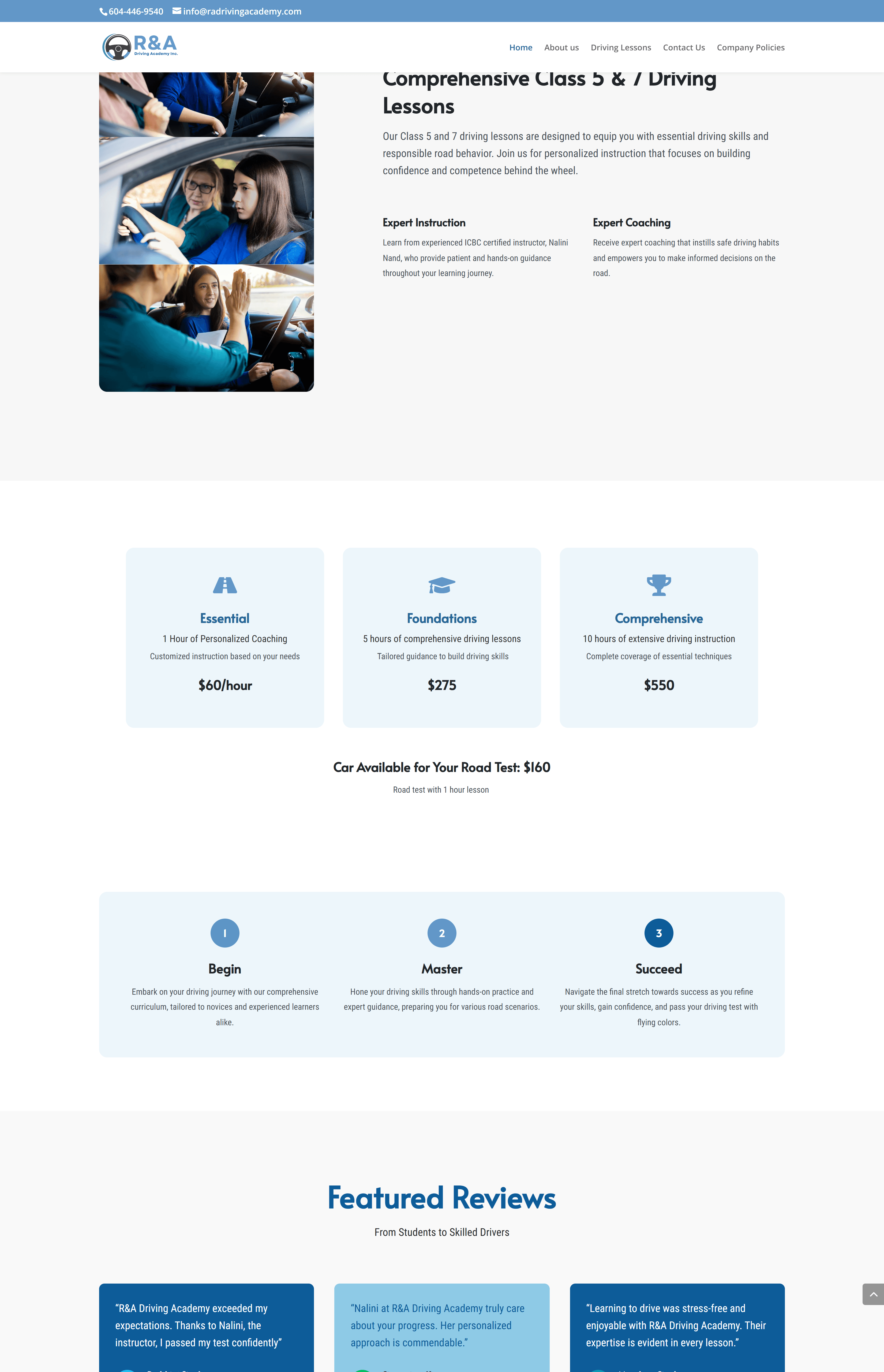 Website Design for R&A Driving Academy Inc. - radrivingacademy.com | Driving School, Road Safety Instruction, Defensive Driving Lessons, Personalized Driving Lessons, ICBC-Certified Driving Courses
