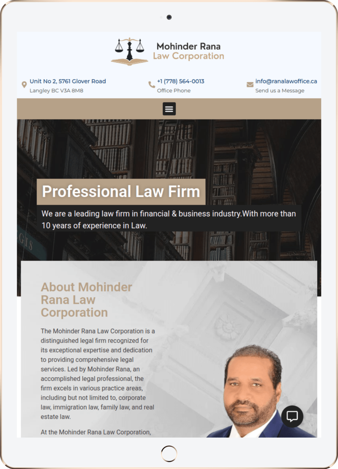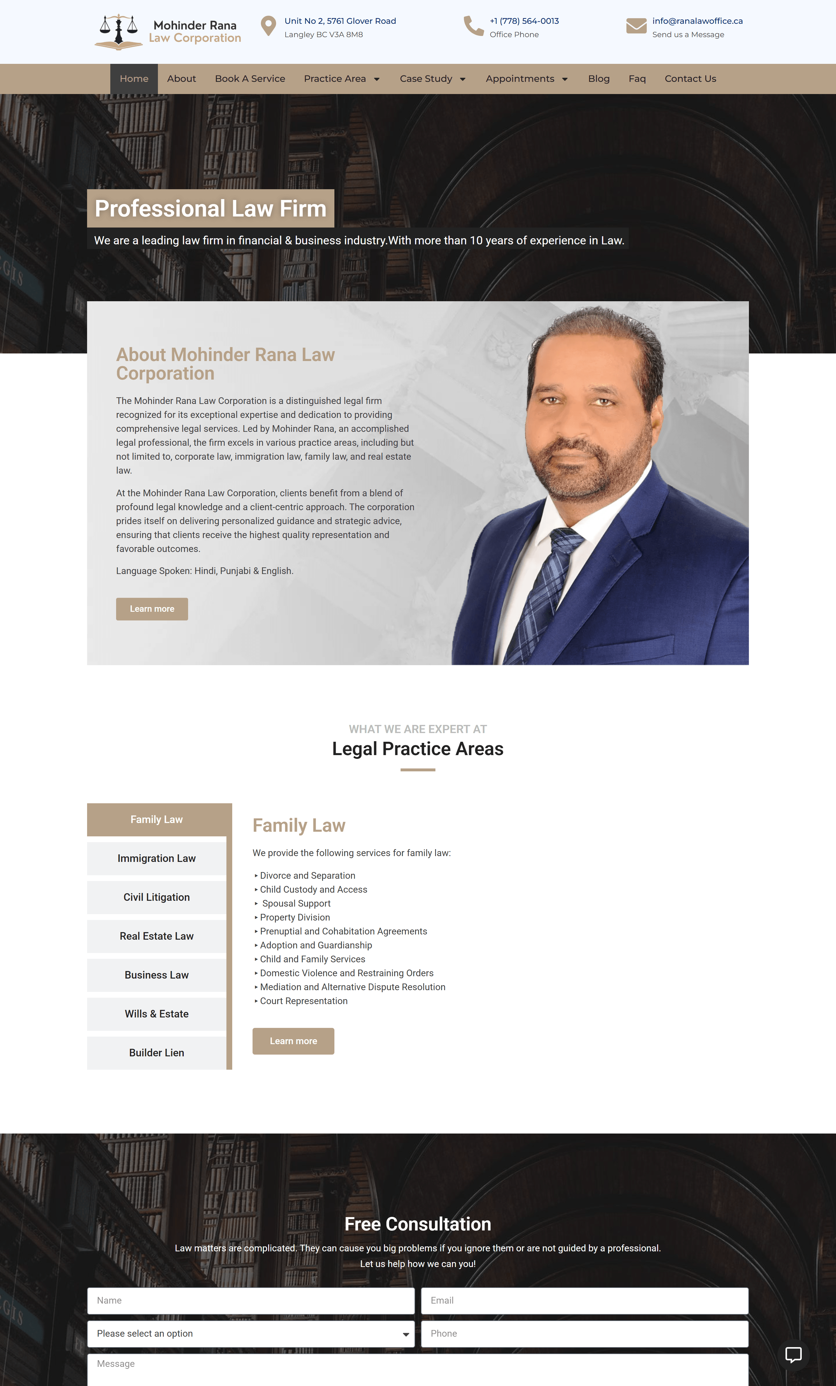 Website Design for Mohinder Rana Law Corporation - ranalawoffice.ca | Family Law Services, Immigration Law Assistance, Civil Litigation Representation, Real Estate Law Consulting, Business Law Advisory