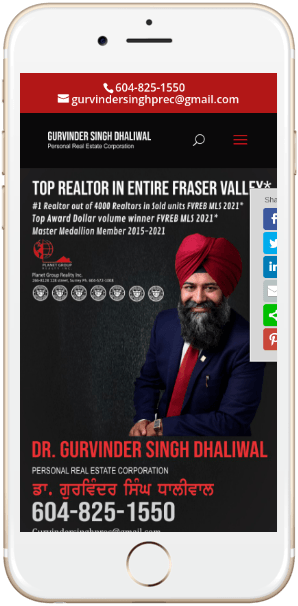 Gurvinder Singh Dhaliwal is a dedicated real estate agent with Planet Group Realty Inc., focusing on residential properties in British Columbia. His website, “Gurvinder Singh Dhaliwal – Planet Group Realty Inc.,” serves as a platform to showcase his expertise in assisting clients with buying and selling homes. With a strong emphasis on personalized service, Gurvinder aims to provide professional real estate solutions tailored to the needs of clients in areas like West Newton, Abbotsford West, and Poplar. Target keywords for the site include real estate, residential properties, and personalized service, which highlight his commitment to client satisfaction.