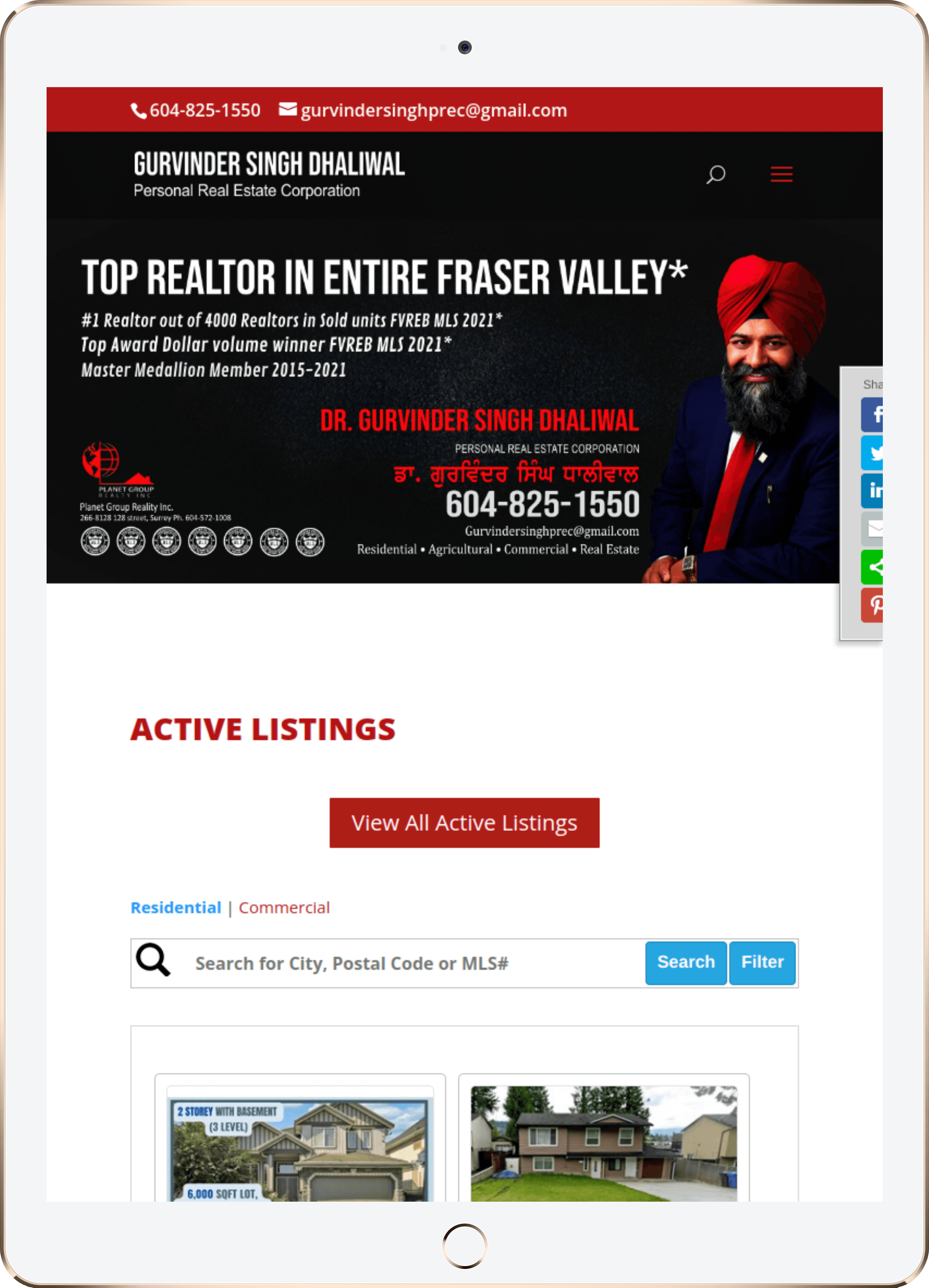 Website Design for Gurvinder Singh Dhaliwal - Planet Group Realty Inc. - gurvindersinghdhaliwal.com | Real Estate Agent In Surrey, Residential Properties In British Columbia, Personalized Real Estate Solutions, Buying And Selling Homes In Abbotsford, Professional Realty Services In Canada