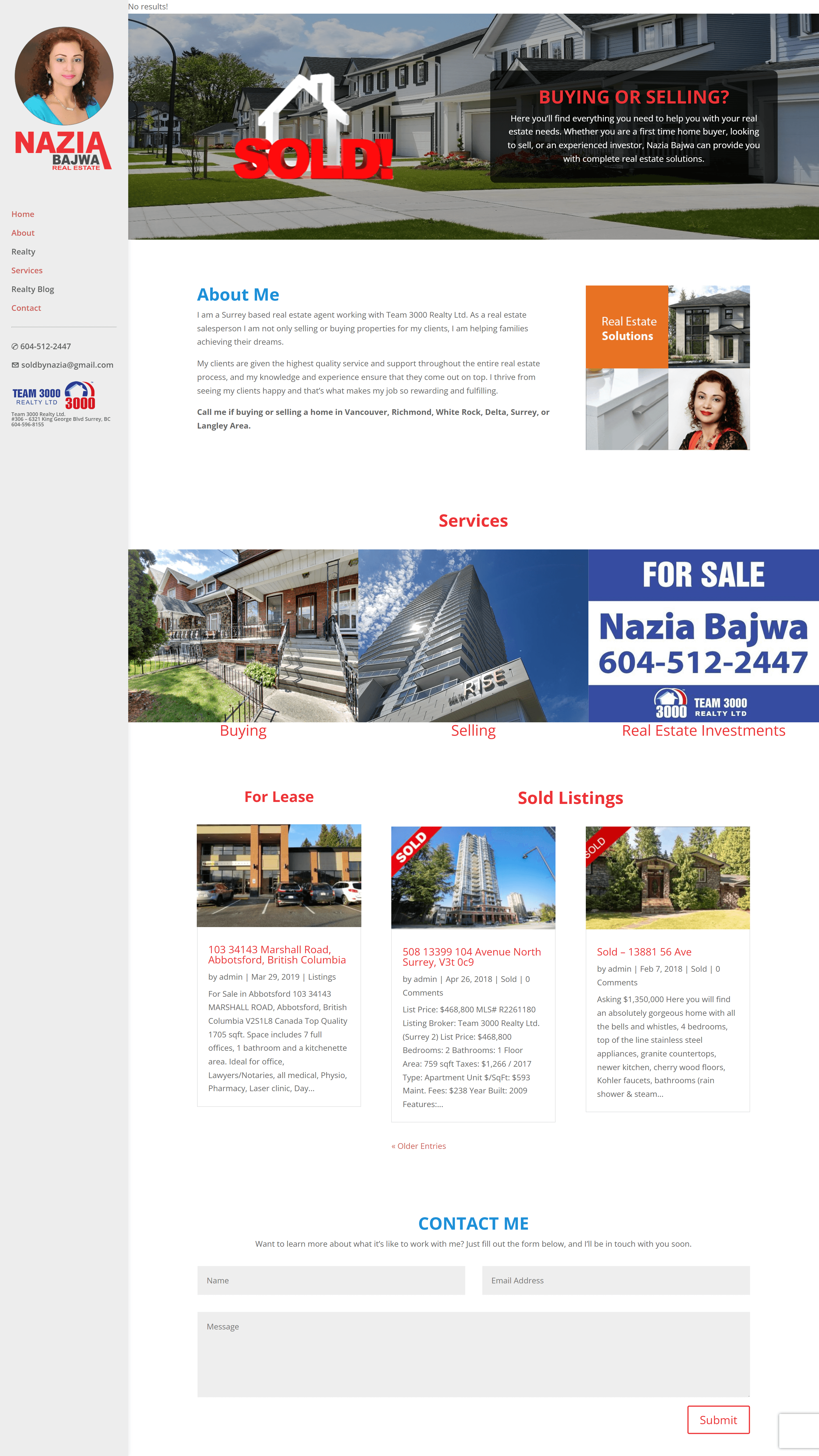 Nazia Bajwa is a Surrey-based real estate agent affiliated with Team 3000 Realty Ltd. Her website, titled “Your Home is Where My Heart Is,” emphasizes her commitment to helping clients achieve their dreams and goals in the real estate market. As a dedicated real estate salesperson, she focuses on facilitating the buying and selling of properties while providing personalized service tailored to each client’s needs. Target keywords for her business include “real estate,” “Surrey,” and “property sales,” reflecting her expertise in the local market and her aim to connect with potential homebuyers and sellers in the area.