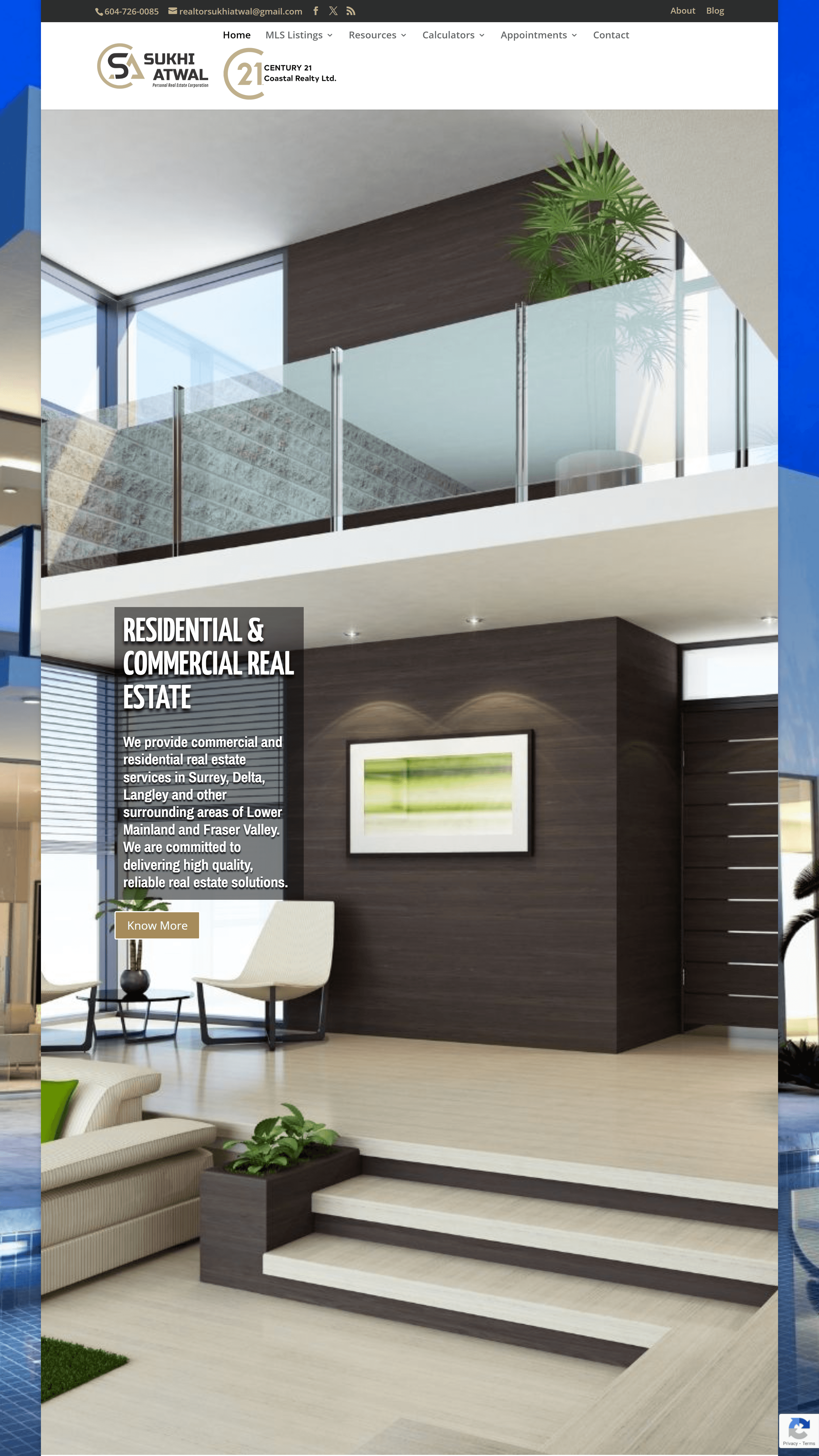 Sukhi Atwal is a licensed REALTOR® with CENTURY 21 Coastal Realty Ltd., specializing in residential and commercial real estate services. The website, titled “Residential & Commercial Real Estate Expert,” offers a variety of resources for buyers and sellers, including MLS listings and mortgage calculators. Located in Surrey, British Columbia, Sukhi Atwal serves the surrounding areas of Delta and Langley, aiming to provide comprehensive support for clients in their real estate endeavors. Target keywords for the site likely include “real estate,” “REALTOR®,” “Surrey,” and “commercial real estate,” reflecting the services and expertise offered by Sukhi Atwal.