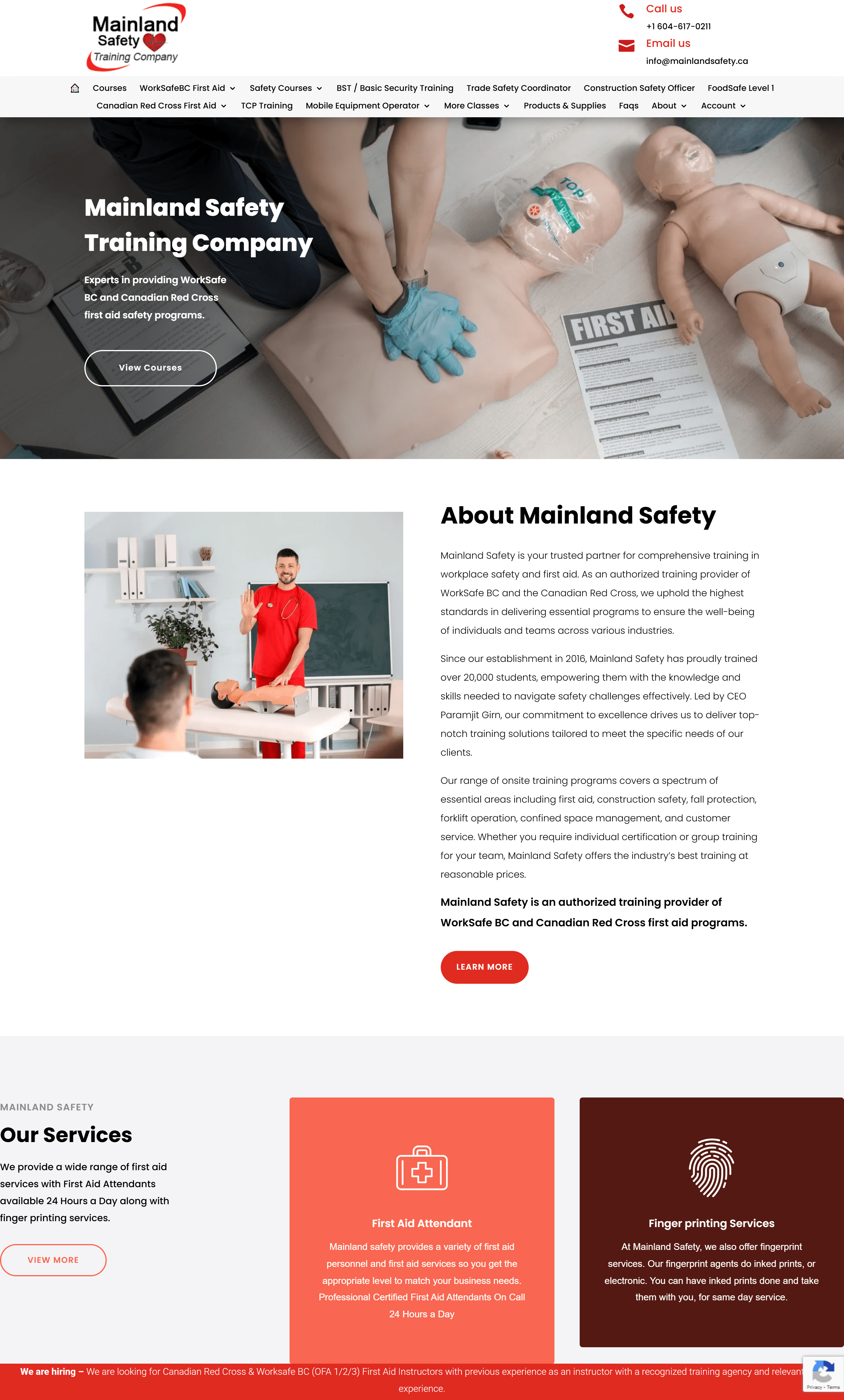 Website Design for WorkSafeBC First Aid, Safety & Foodsafe Courses in Surrey, Vancouver - mainlandsafety.ca | Workplace Safety Training, First Aid Certification Courses, Food Safety Training Programs, Authorized WorkSafeBC Training Provider, Comprehensive Safety Training Services