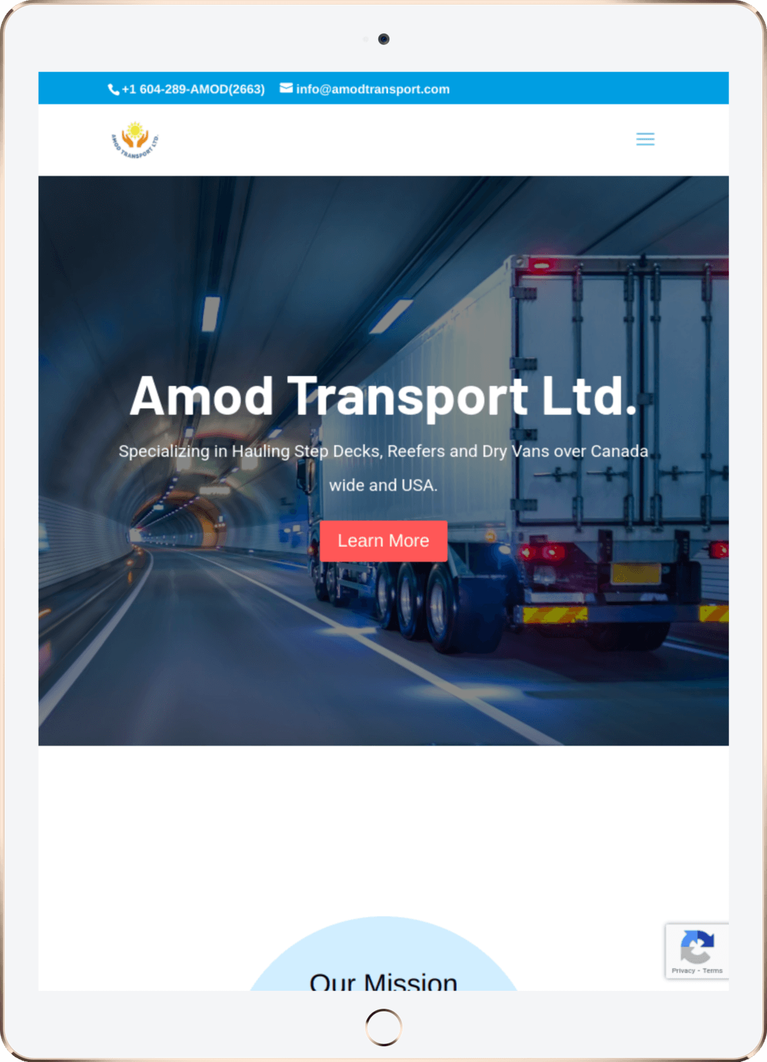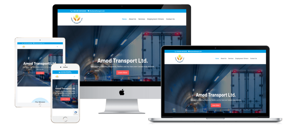 Website Design for Amod Transport Ltd. - amodtransport.com | Trucking Services Across Canada And USA, Step Deck Hauling Services, Reefer Transportation Solutions, Dry Van Freight Shipping, Reliable Logistics And Transportation Solutions