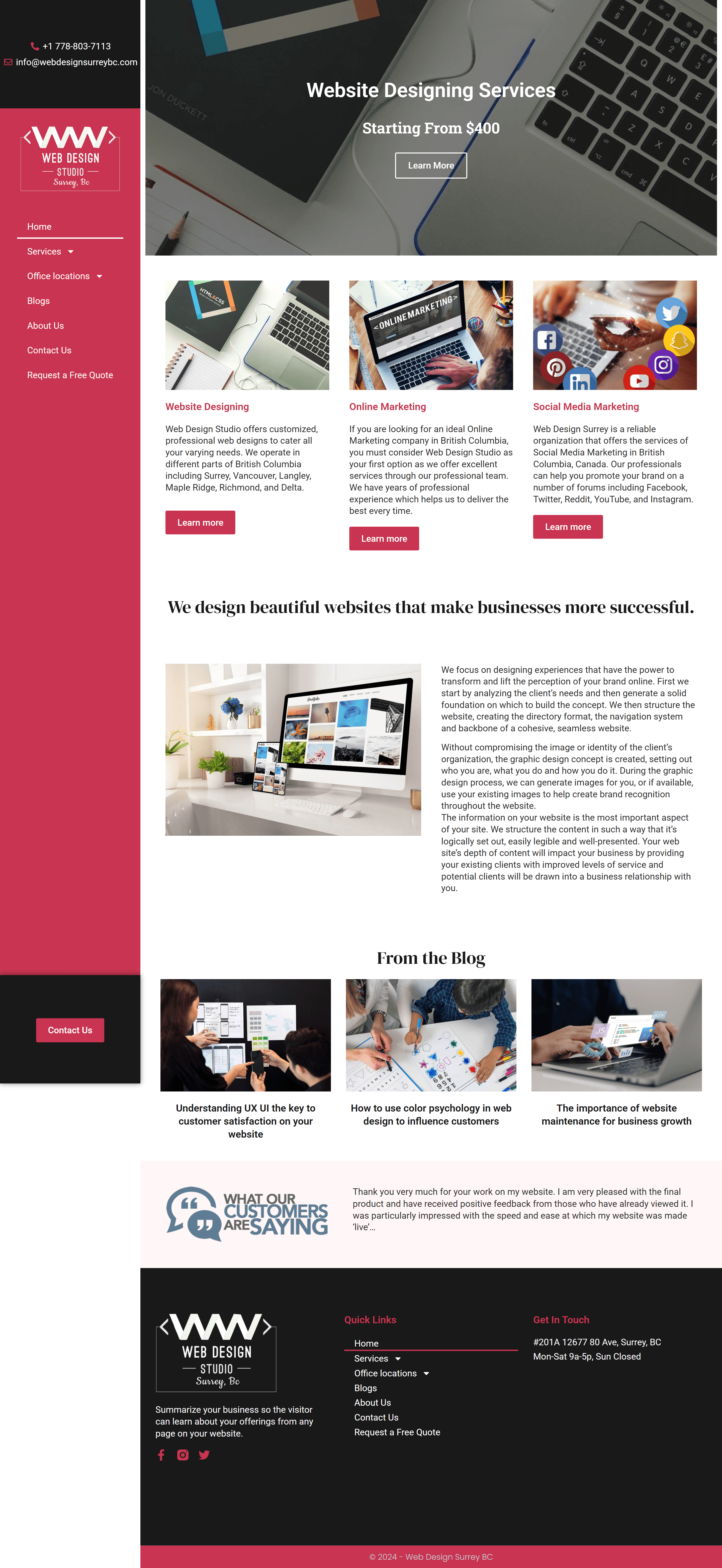 Web Design Surrey BC is a creative solutions provider specializing in expert web design services tailored to enhance online presence. The company offers a wide range of services, including web design, web development, responsive design, social media integration, online marketing, phone app development, e-commerce solutions, and database-driven websites. With a commitment to serving areas such as Surrey, White Rock, and Edmonton, Web Design Surrey BC focuses on delivering customized solutions that cater to the unique needs of businesses. Their target keywords include web design, online marketing, and e-commerce solutions, positioning them effectively in the competitive digital landscape.